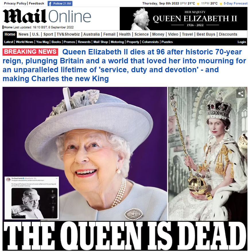Ο Βρετανικός Τύπος, με έκτακτα, ενημέρωνε από το απόγευμα της Πέμπτης για την κατάσταση της υγείας της Βασίλισσας Ελισάβετ και για όλες τις κινήσεις που γινόντουσαν στο Μπάλμοραλ όπου και άφησε την τελευταία της πνοή.