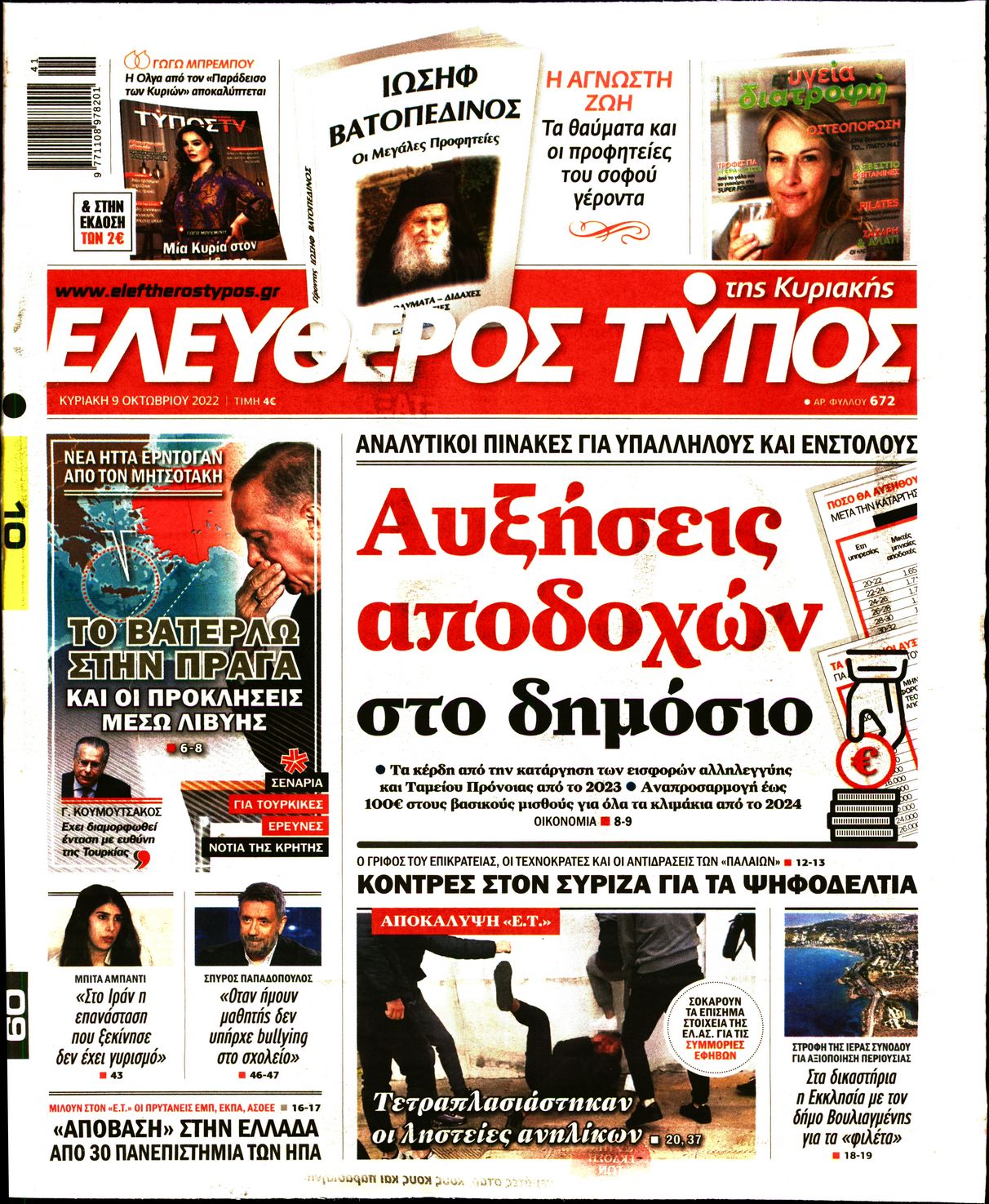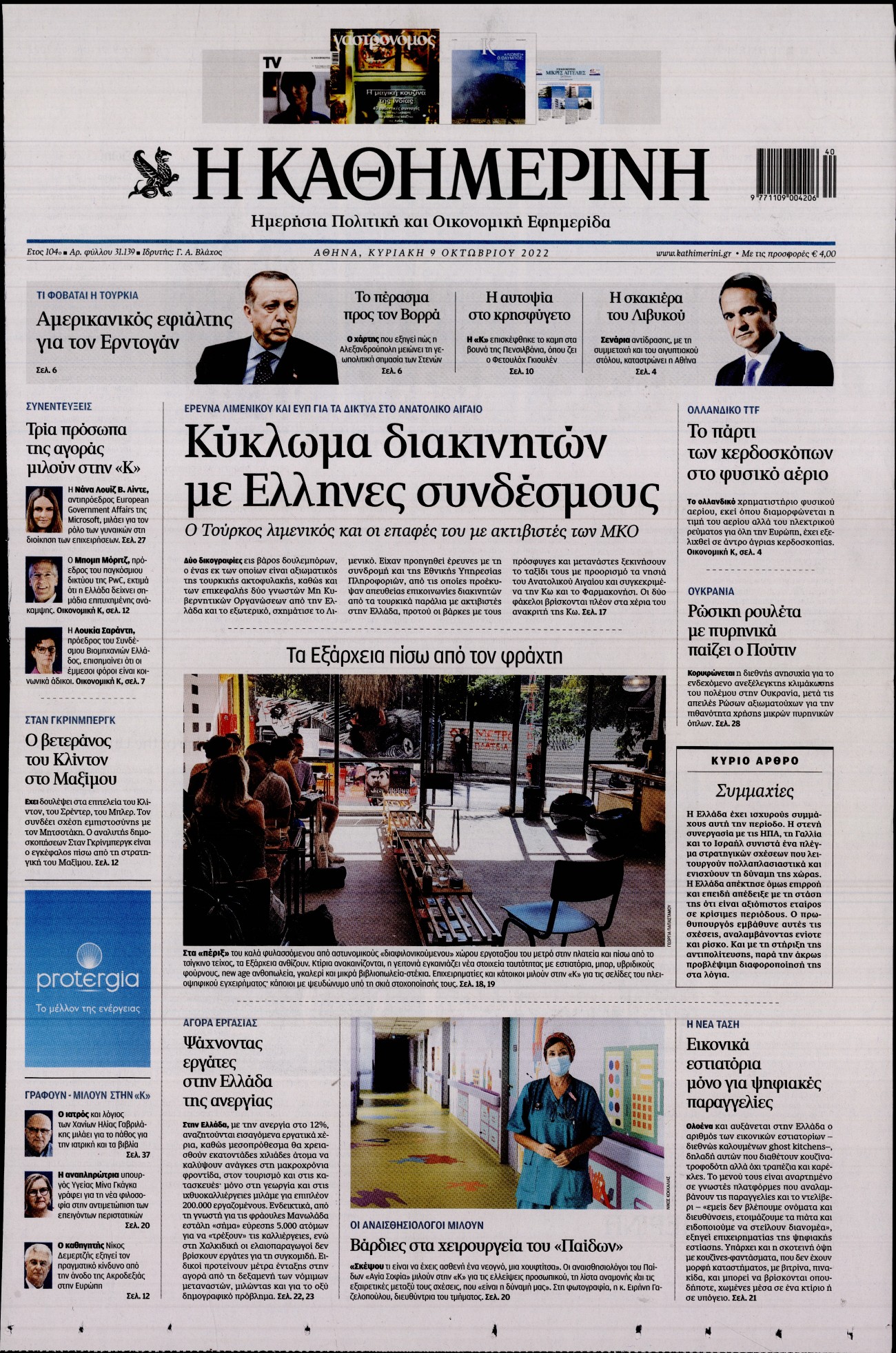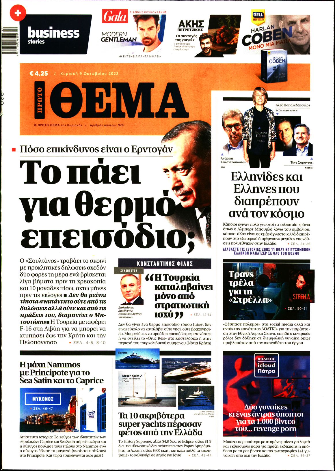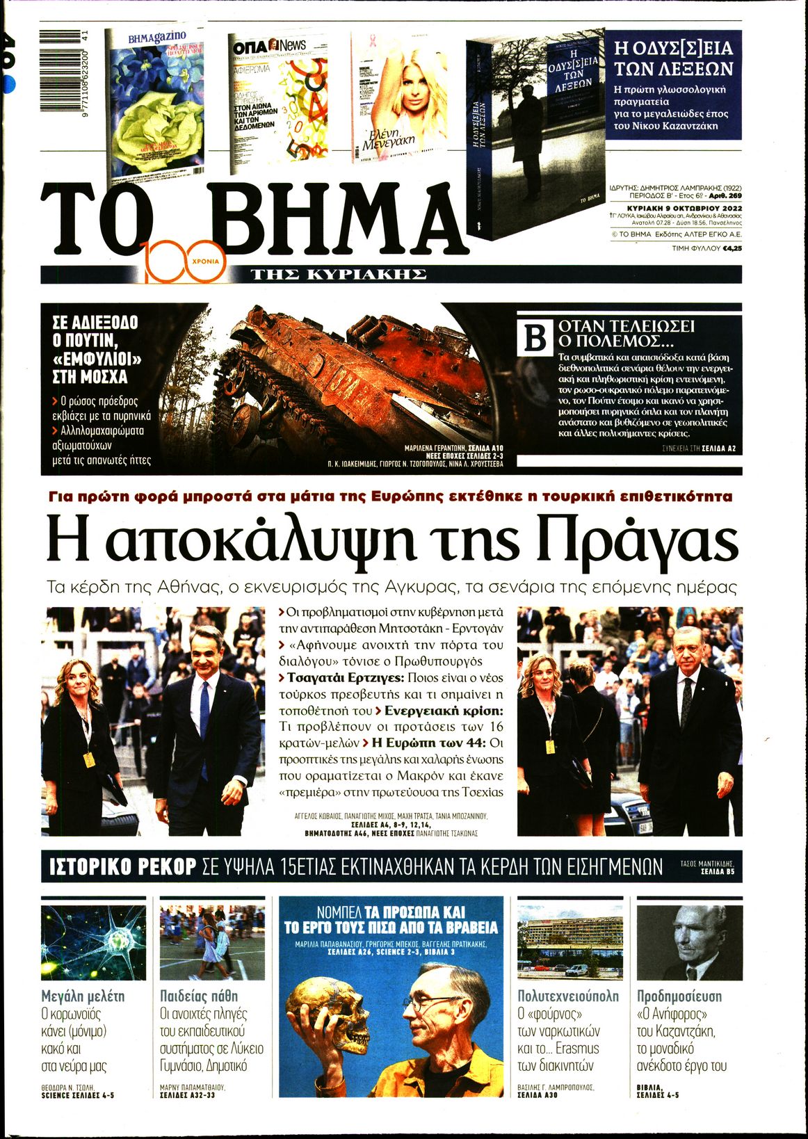 Τα ελληνοτουρκικά κι όσα έγιναν στην Πράγα μεταξύ Κυριάκου Μητσοτάκη και Ρετζέπ Ταγίπ Ερντογάν ξεχωρίζουν μεταξύ άλλων θεμάτων στα πρωτοσέλιδα των κυριακάτικων εφημερίδων.