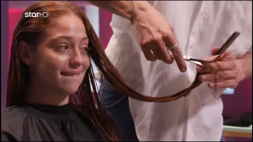 Στη συνέχεια όμως, η Αλεξία δεν μπορούσε με τίποτα να συγκρατήσει τα δάκρυά της. Ο λόγος; Η διαγωνιζόμενη είχε πολύ μακριά κόκκινα μαλλιά, που θύμιζαν τα μαλλιά γοργόνας. Πρόκειται για ένα look που έπρεπε να αποχωριστεί, όπως είπαν οι κριτές. Παρόλο που κόβοντάς τα, τα μαλλιά της παρέμειναν μακριά, η Αλεξία δεν μπορούσε να σταματήσει να κλαίει, ενώ ταυτόχρονα γελούσε!