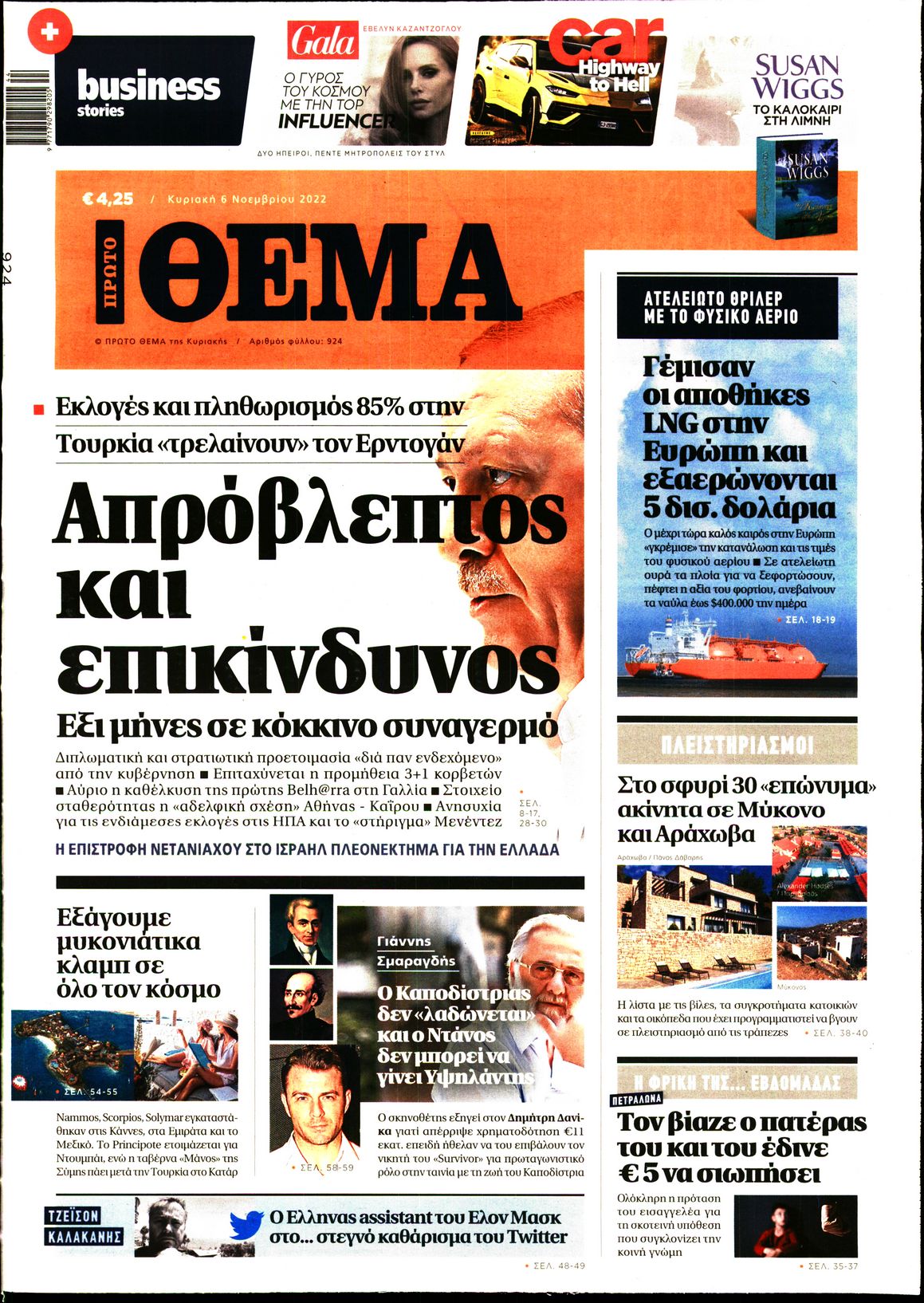 Τα σενάρια εκλογών, τα ελληνοτουρκικά και το «καλάθι του νοικοκυριού» εν μέσω κύματος ακρίβειας ξεχωρίζουν μεταξύ άλλων θεμάτων στα πρωτοσέλιδα των κυριακάτικων εφημερίδων.