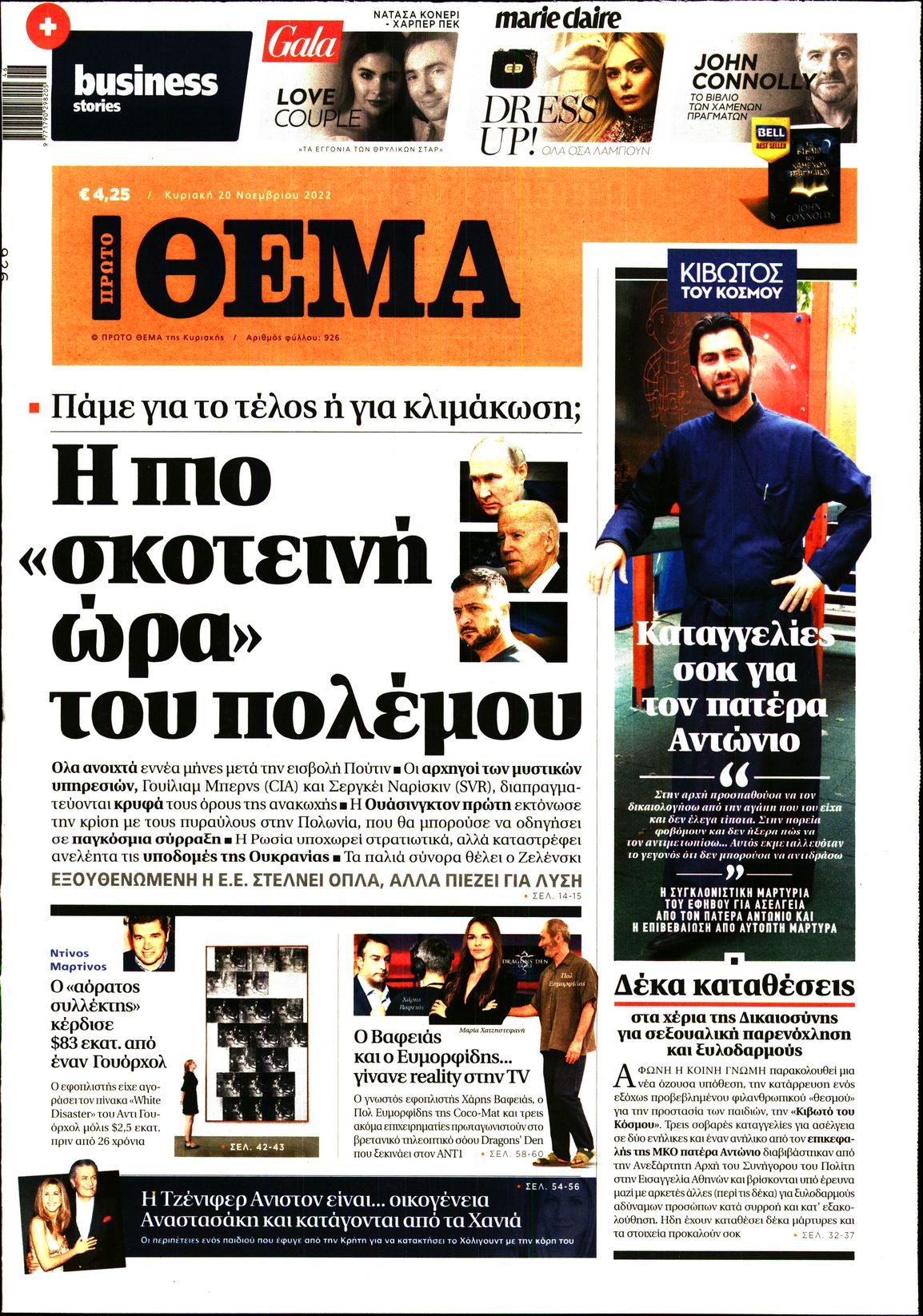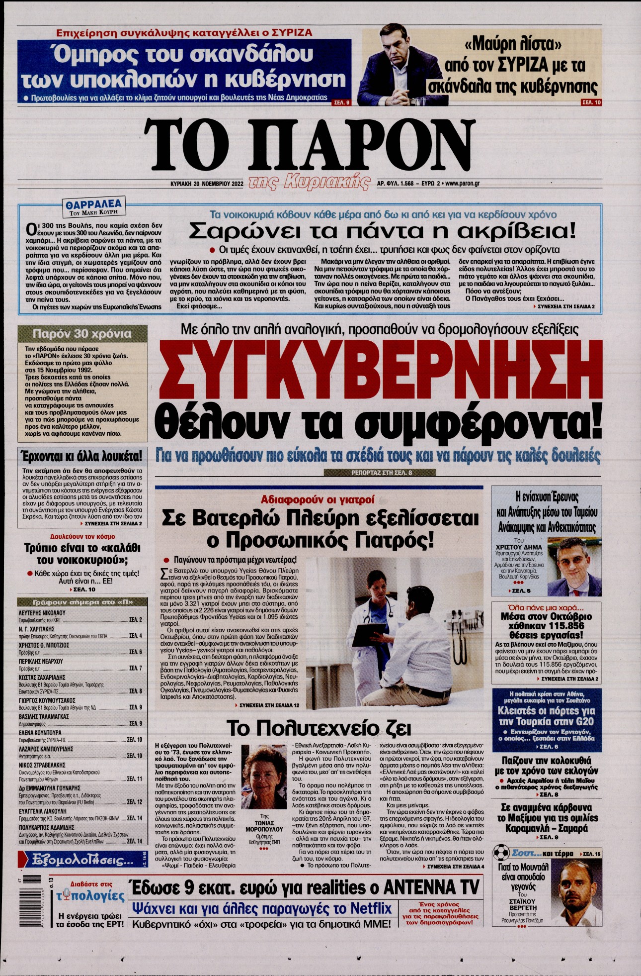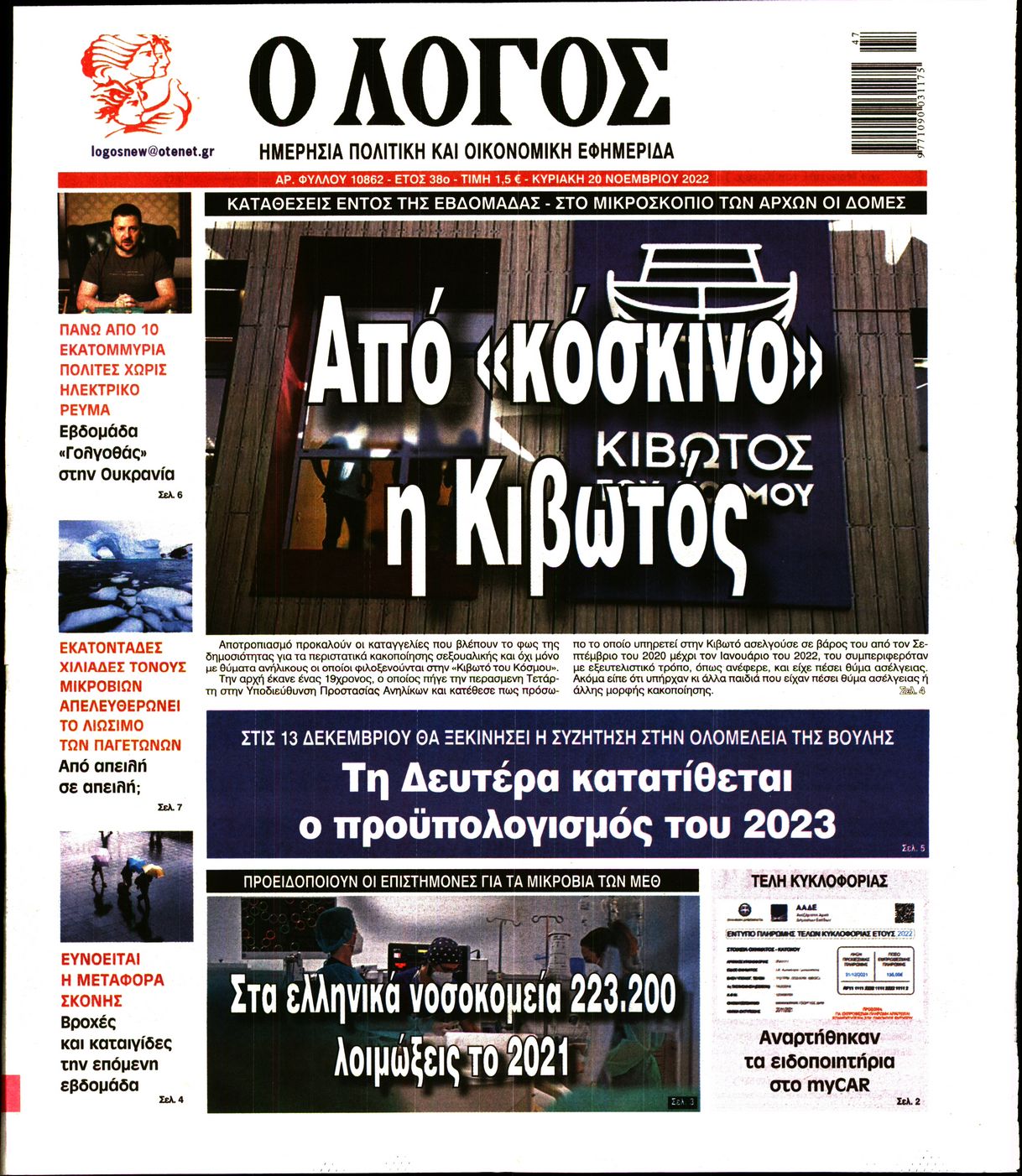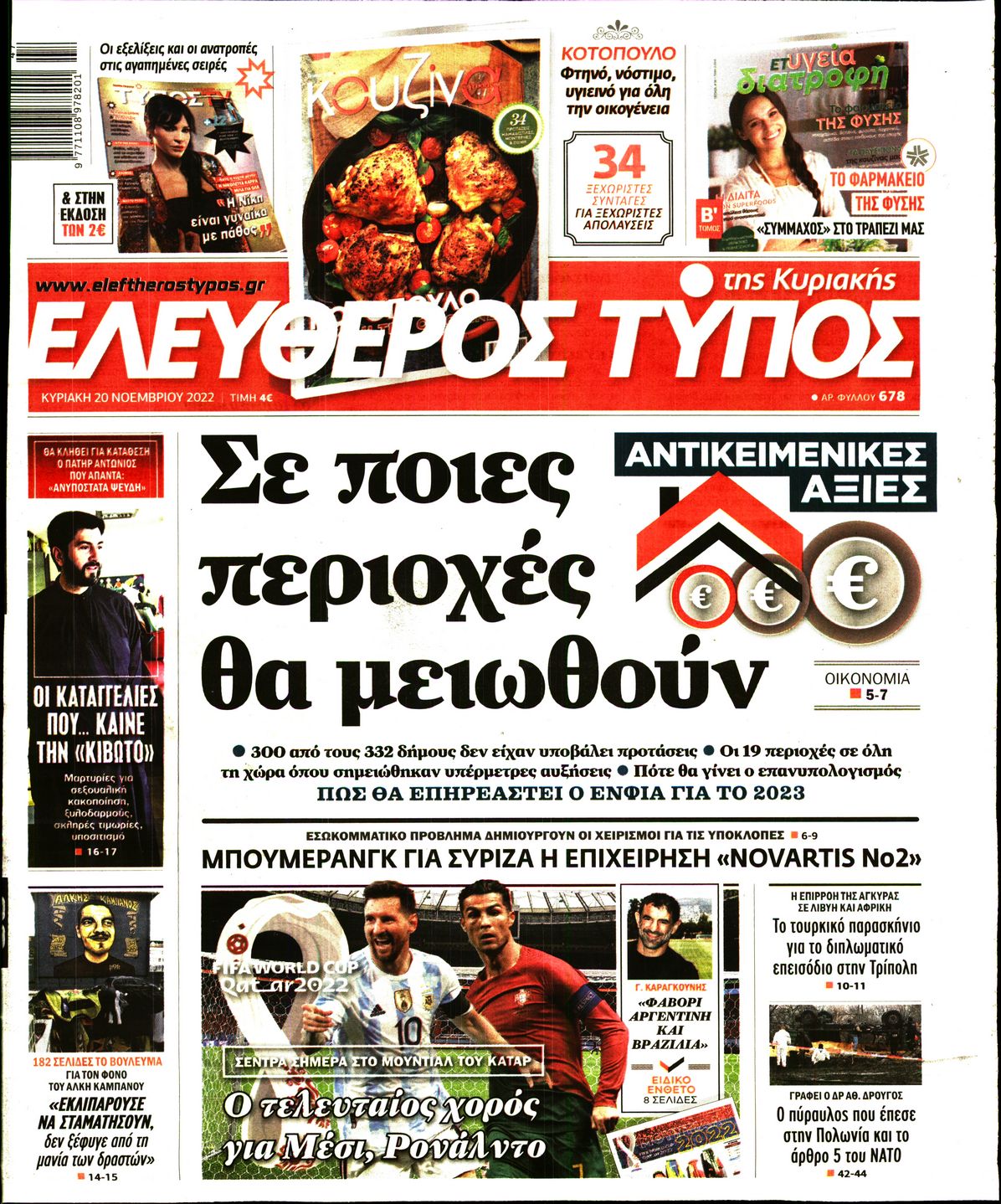 Οι καταγγελίες για την Κιβωτό του Κόσμου, η έναρξη του Παγκοσμίου Κυπέλλου στο Κατάρ, και οι κυβερνητικές κινήσεις με το βλέμα στις εκλογές ξεχωρίζουν μεταξύ άλλων θεμάτων στα πρωτοσέλιδα των κυριακάτικων εφημερίδων.
