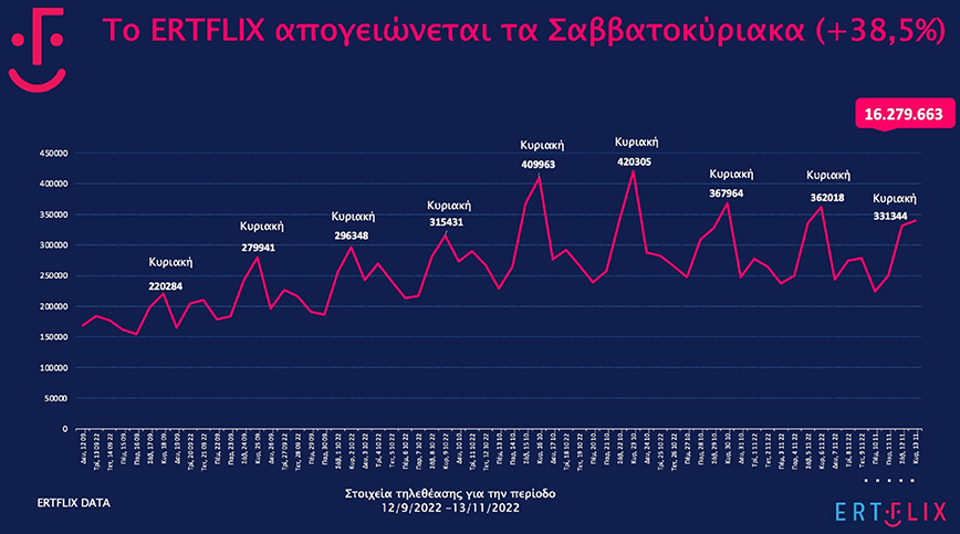 Στην πιο επιτυχημένη στρατηγική επιλογή της ΕΡΤ αναδεικνύεται η δημιουργία της πλατφόρμας ERTFlix αφού όχι μόνο καταφέρνει να «στηρίζει» τα προγράμματα της δημόσιας τηλεόρασης, αλλά να υπερδιπλασιάζει την τηλεθέαση της.