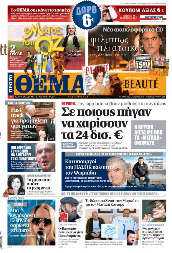Μη χάσετε, εκτάκτως, αύριο το Πρώτο θέμα το οποίο περιλαμβάνει το νέο ακυκλοφόρητο cd του Φίλιππου Πλιάτσικα «Την αλήθεια να πω», το dvd της ταινίας «Ο μάγος του Οζ», το χριστουγεννιάτικο τεύχος του περιοδικού Votre Beaute και ένα κουπόνι αξίας 6 ευρώ για αγορές από γνωστή αλυσίδα σούπερ μάρκετ.