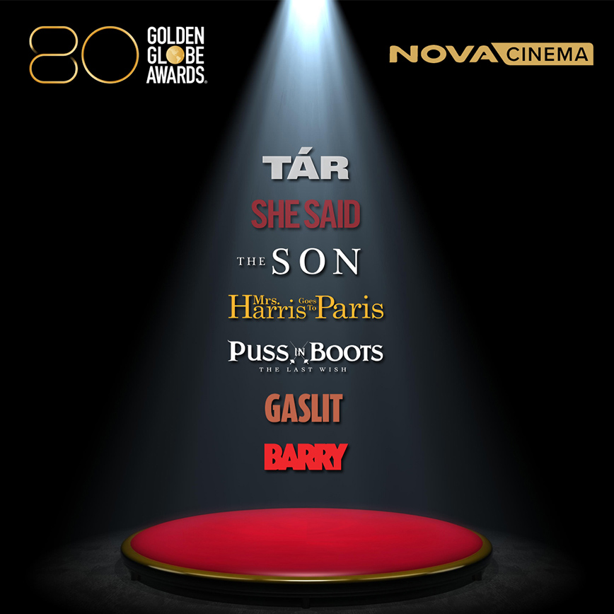 Η Nova, μέλος της United Group του κορυφαίου παρόχου τηλεπικοινωνιών και μέσων στη Νοτιοανατολική Ευρώπη, συνεχίζει να πρωταγωνιστεί στα μεγαλύτερα διεθνή βραβεία, αποσπώντας 10 υποψηφιότητες σε όλες τις Premium Κατηγορίες στις φετινές Χρυσές Σφαίρες για ταινίες και σειρές που προβάλλονται αποκλειστικά από τα κανάλια της, τα Novacinema, τον απόλυτο κινηματογραφικό προορισμό! Η φετινή τελετή των βραβείων Golden Globes θα μεταδοθεί LIVE στις 10 Ιανουαρίου 2023 από το κανάλι Novastars!