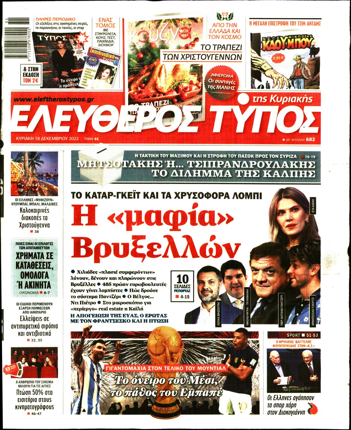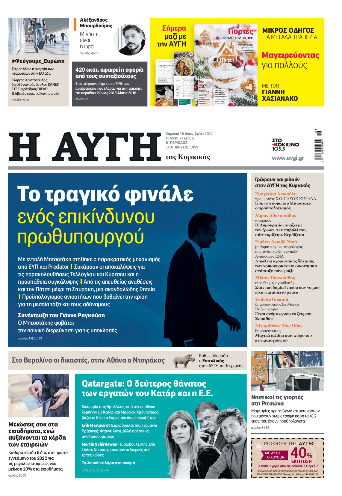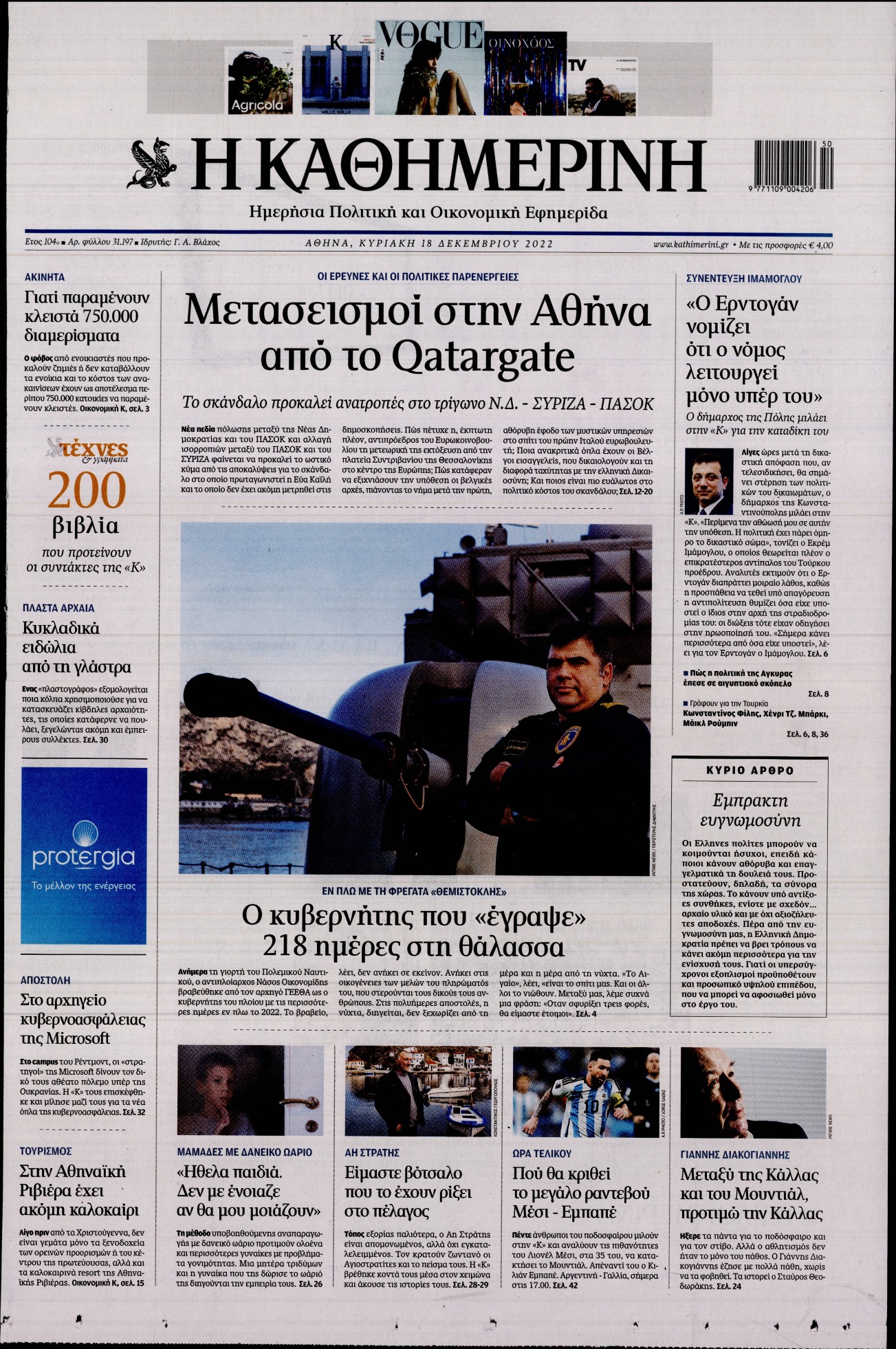 Το σκάνδαλο με τη δωροδοκία ευρωβουλευτών από το Κατάρ, γνωστό κι ως Qatargate, αλλά κι όσα στοιχεία αφορούν την Εύα Καϊλή στα πρωτοσέλιδα των κυριακάτικων εφημερίδων.