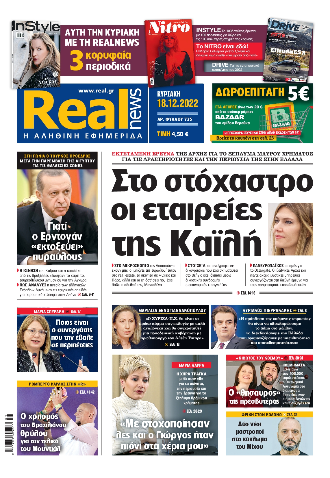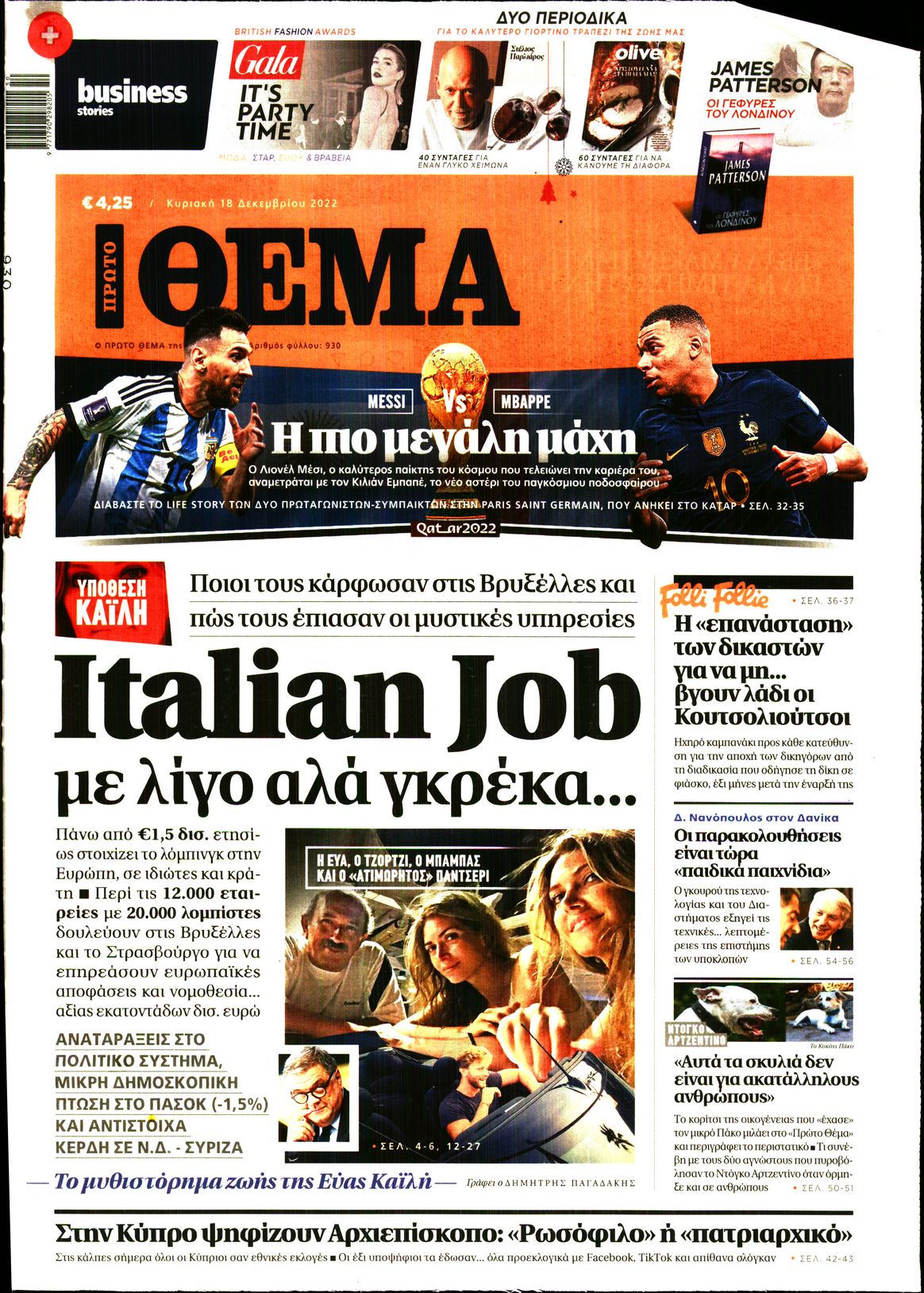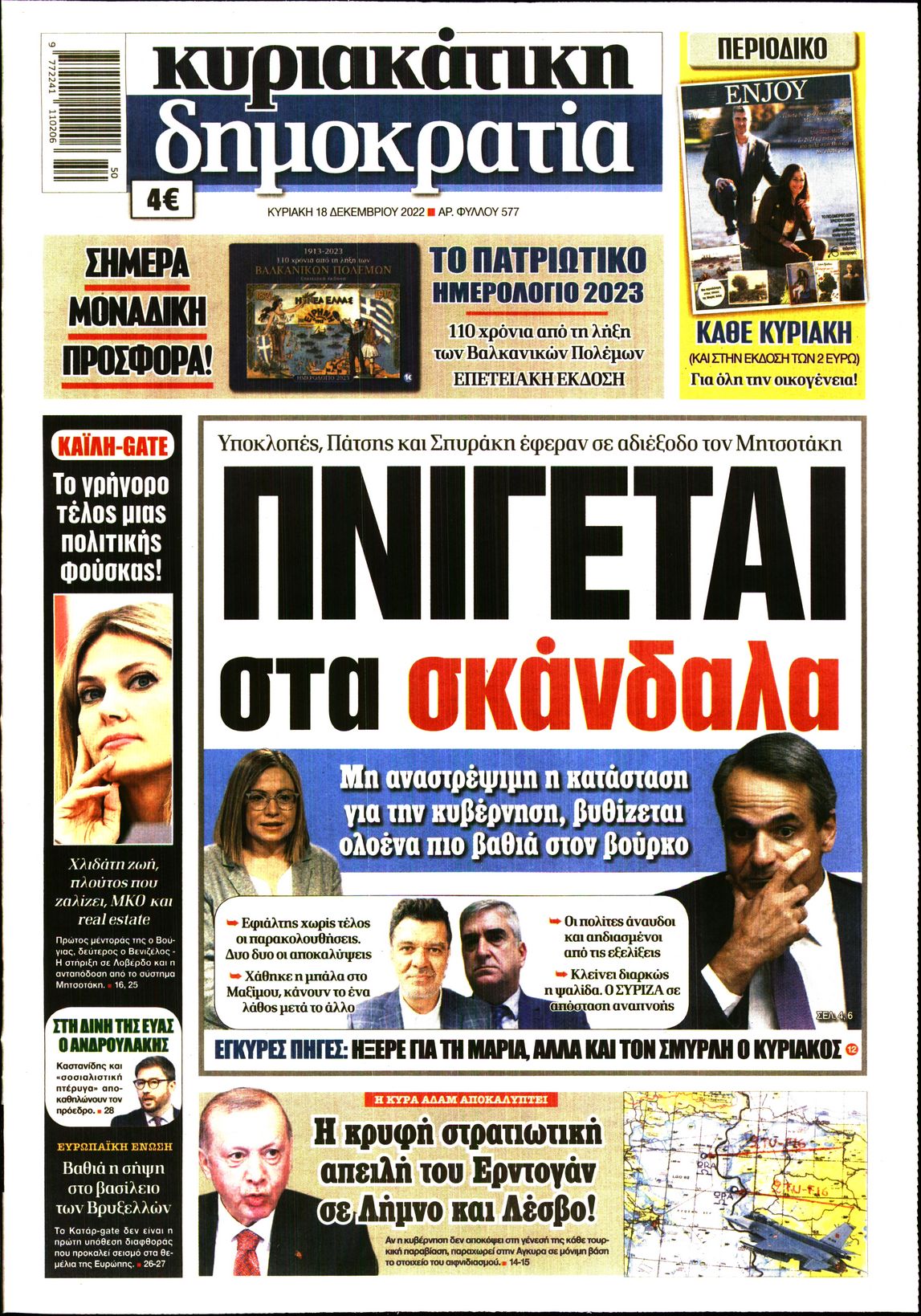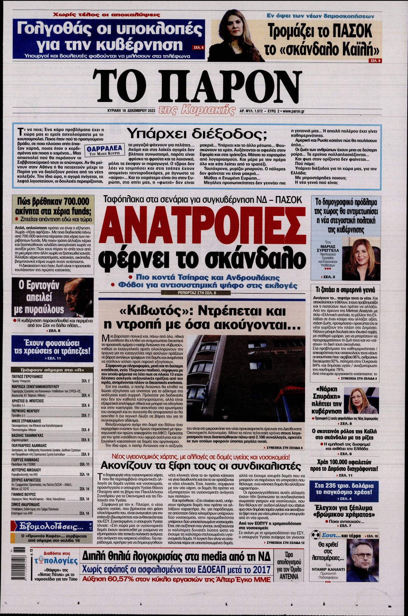 Το σκάνδαλο με τη δωροδοκία ευρωβουλευτών από το Κατάρ, γνωστό κι ως Qatargate, αλλά κι όσα στοιχεία αφορούν την Εύα Καϊλή στα πρωτοσέλιδα των κυριακάτικων εφημερίδων.