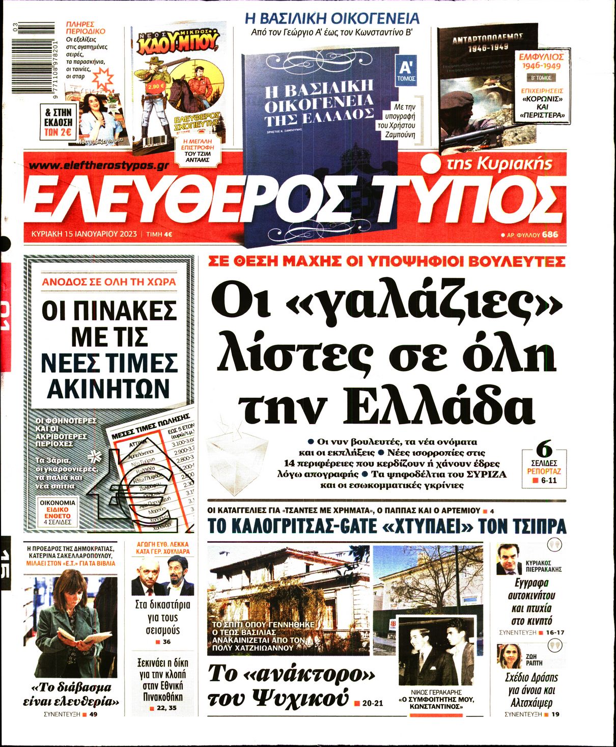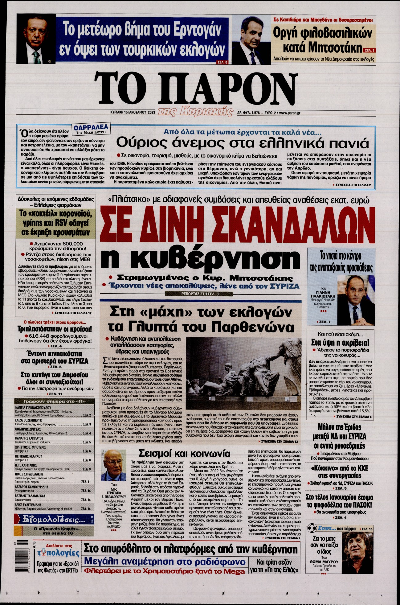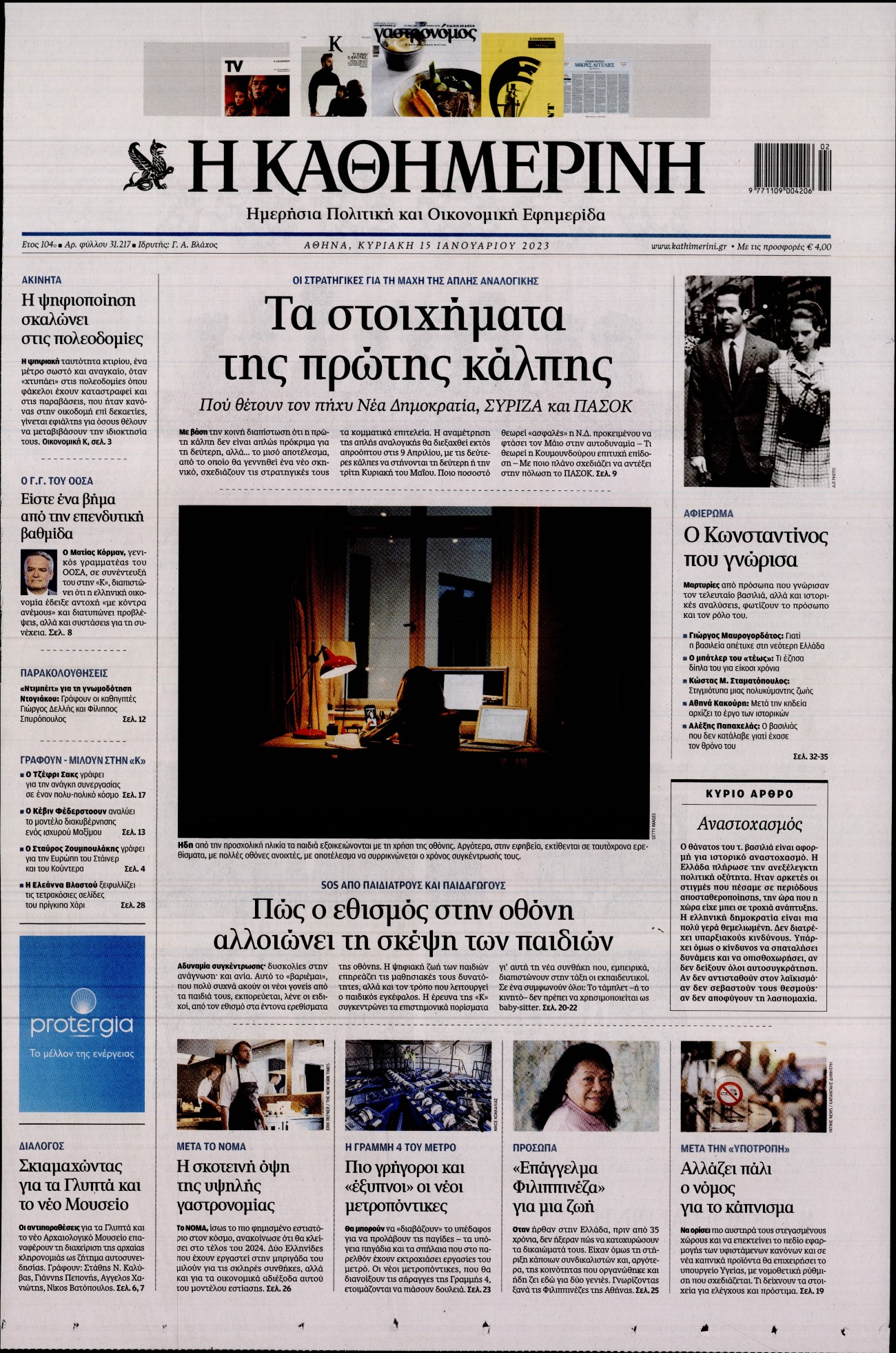 Οι εκλογές, η τουρκική προκλητικότητα, ο θάνατος του τέως βασιλιά Κωνσταντίνου και η μεγάλη συνέντευξη του Κυριάκου Μητσοτάκη ξεχωρίζουν μεταξύ άλλων στα πρωτοσέλιδα των κυριακάτικων εφημερίδων.