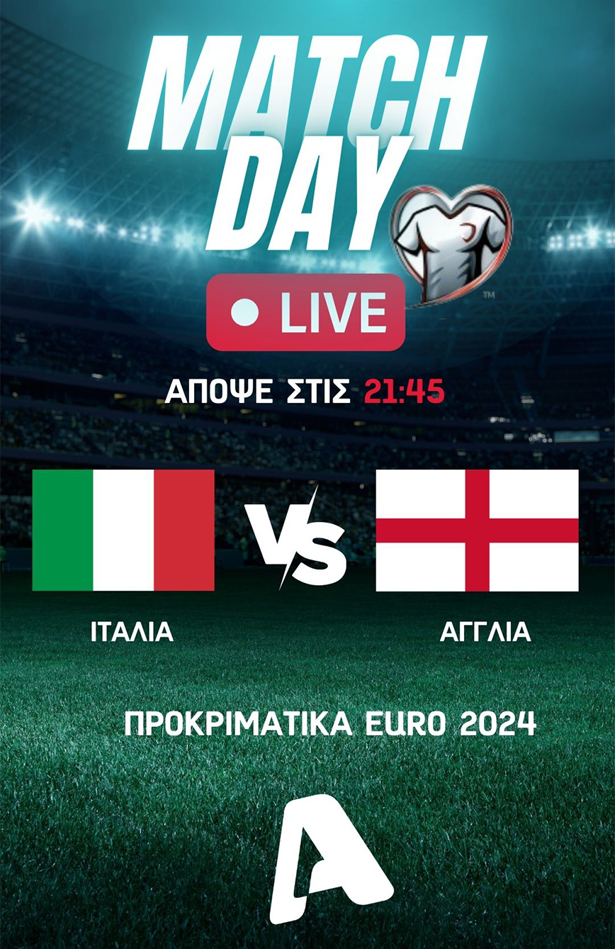 Τα προκριματικά για το Euro 2024 ξεκινούν απόψε δυνατά στον Alpha με το ματς Ιταλία – Αγγλία που θα προβληθεί στις 21:45.