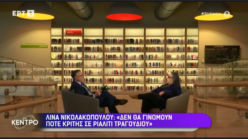 Η διάσημη στιχουργός Λίνα Νικολακοπούλου βρέθηκε καλεσμένη στην εκπομπή «Στο Κέντρο» που μεταδόθηκε το βράδυ της Μεγάλης Τρίτης (11/4) από την ΕΡΤ.