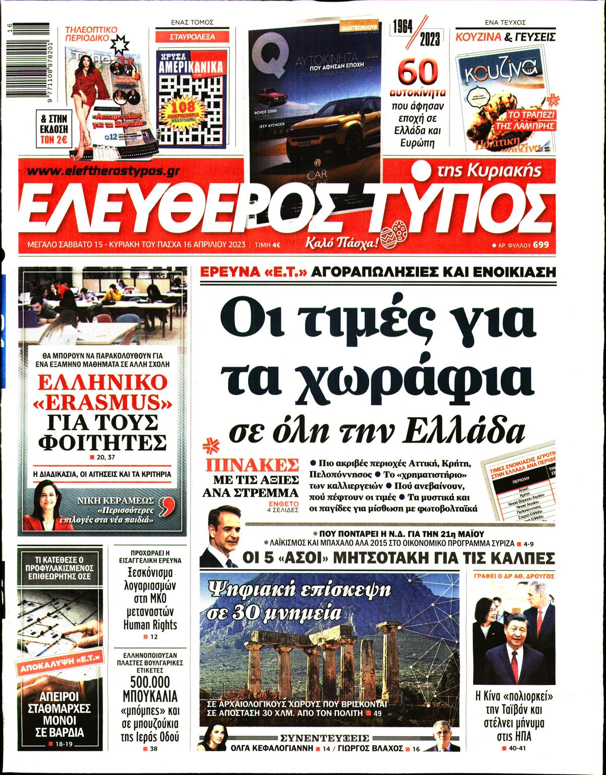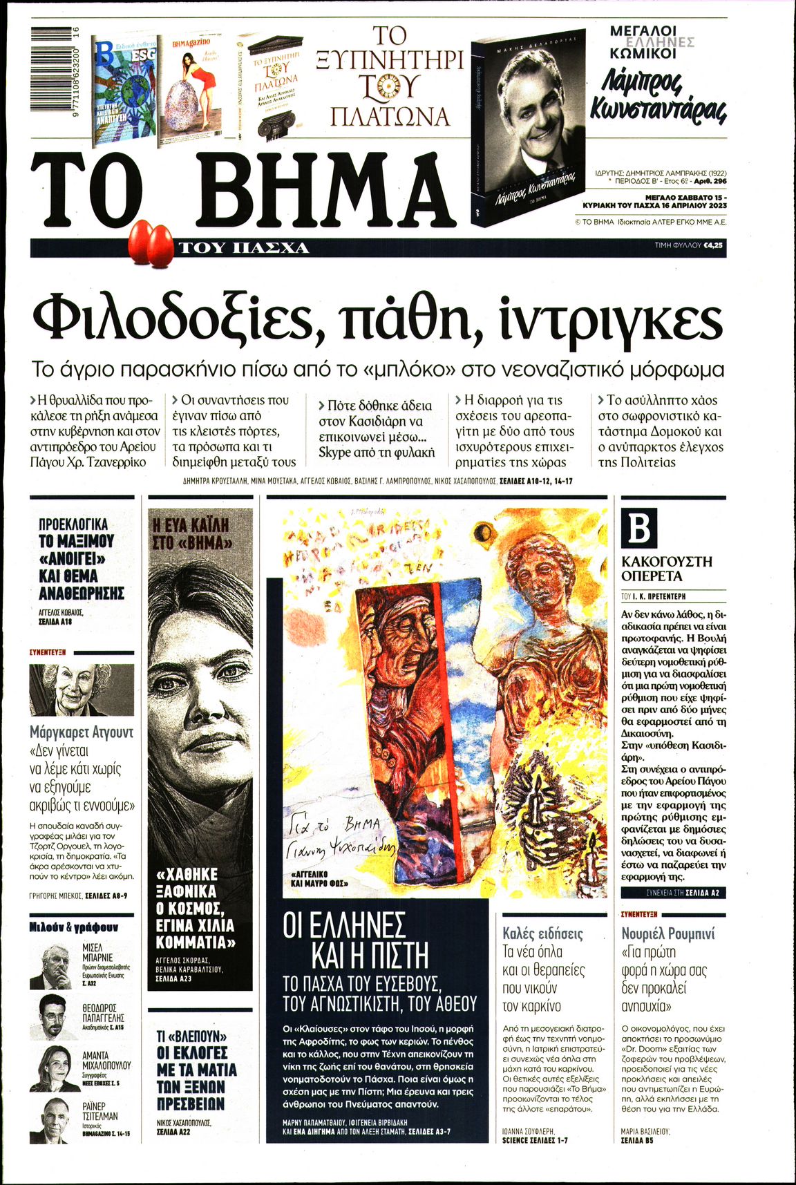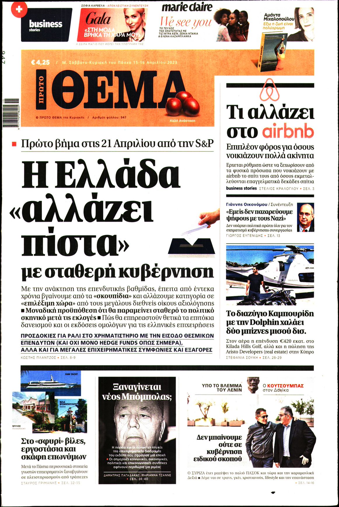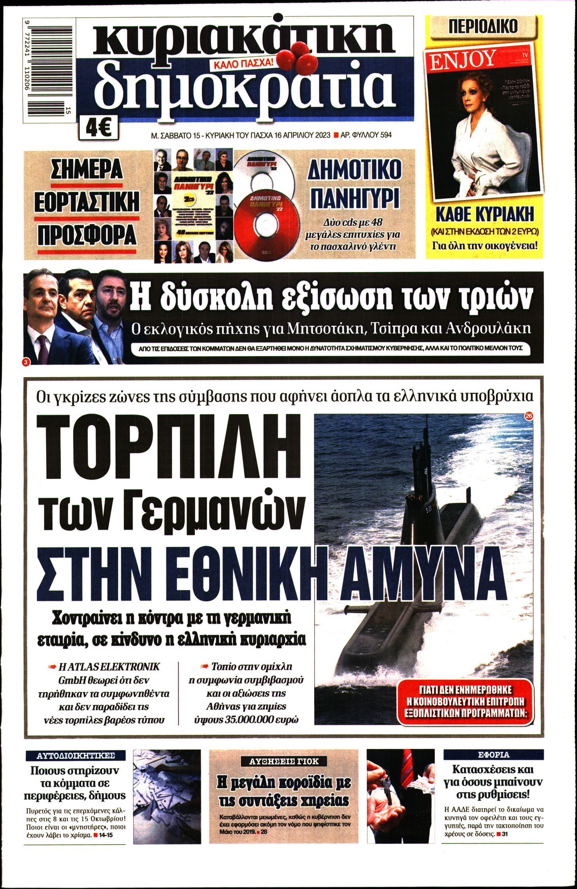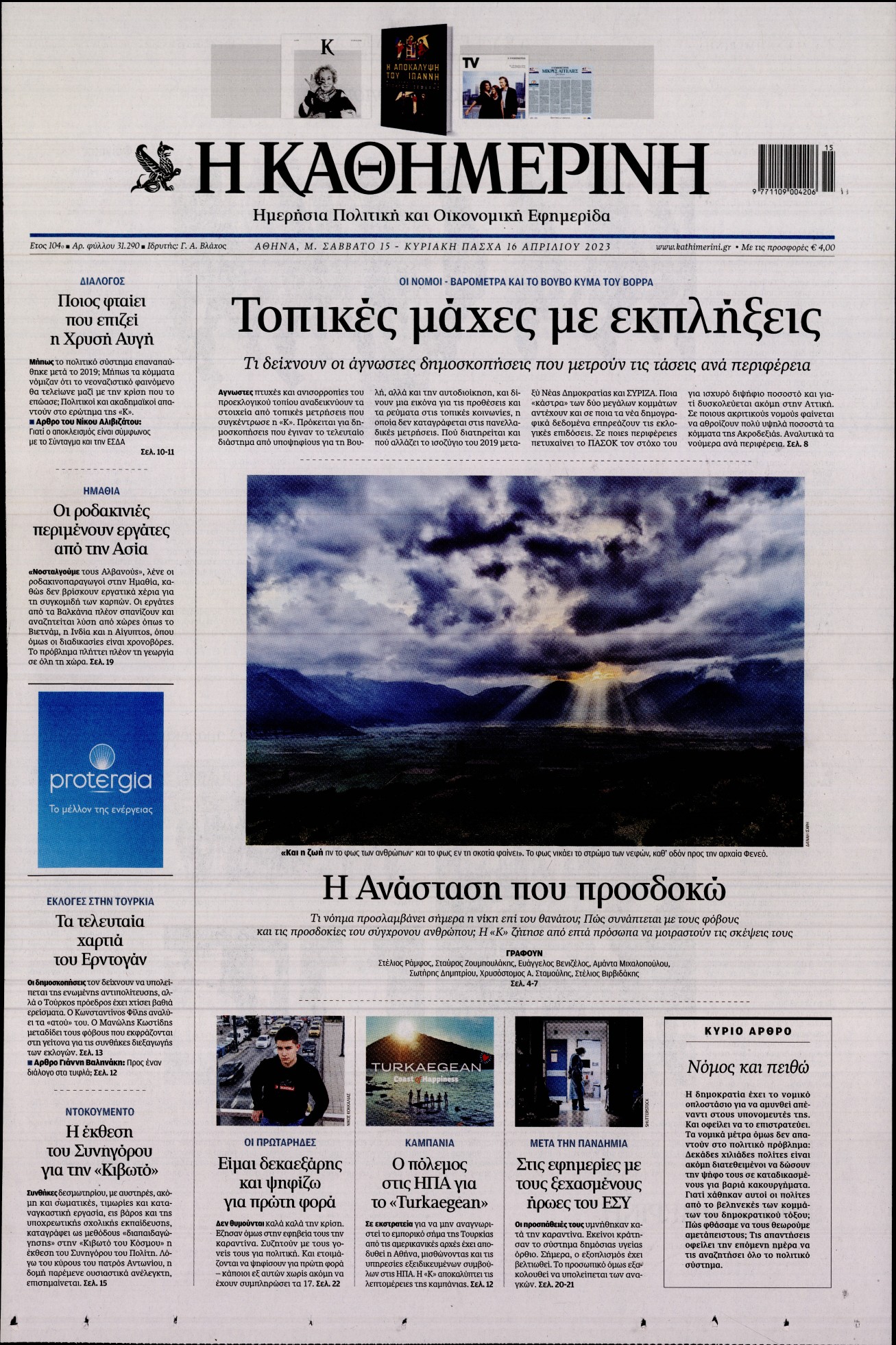 Τα πρωτοσέλιδα των κυριακάτικων εφημερίδων ασχολούνται με το πολιτικό θερμόμετρο που βρίσκεται στο κόκκινο ενόψει των εκλογών, αλλά και την τροπολογία για τον αποκλεισμό του κόμματος του Ηλία Κασιδιάρη. Λόγω της αργίας του Πάσχα, οι κυριακάτικες εφημερίδες κυκλοφορούν εκτάκτως το Μεγάλο Σάββατο.