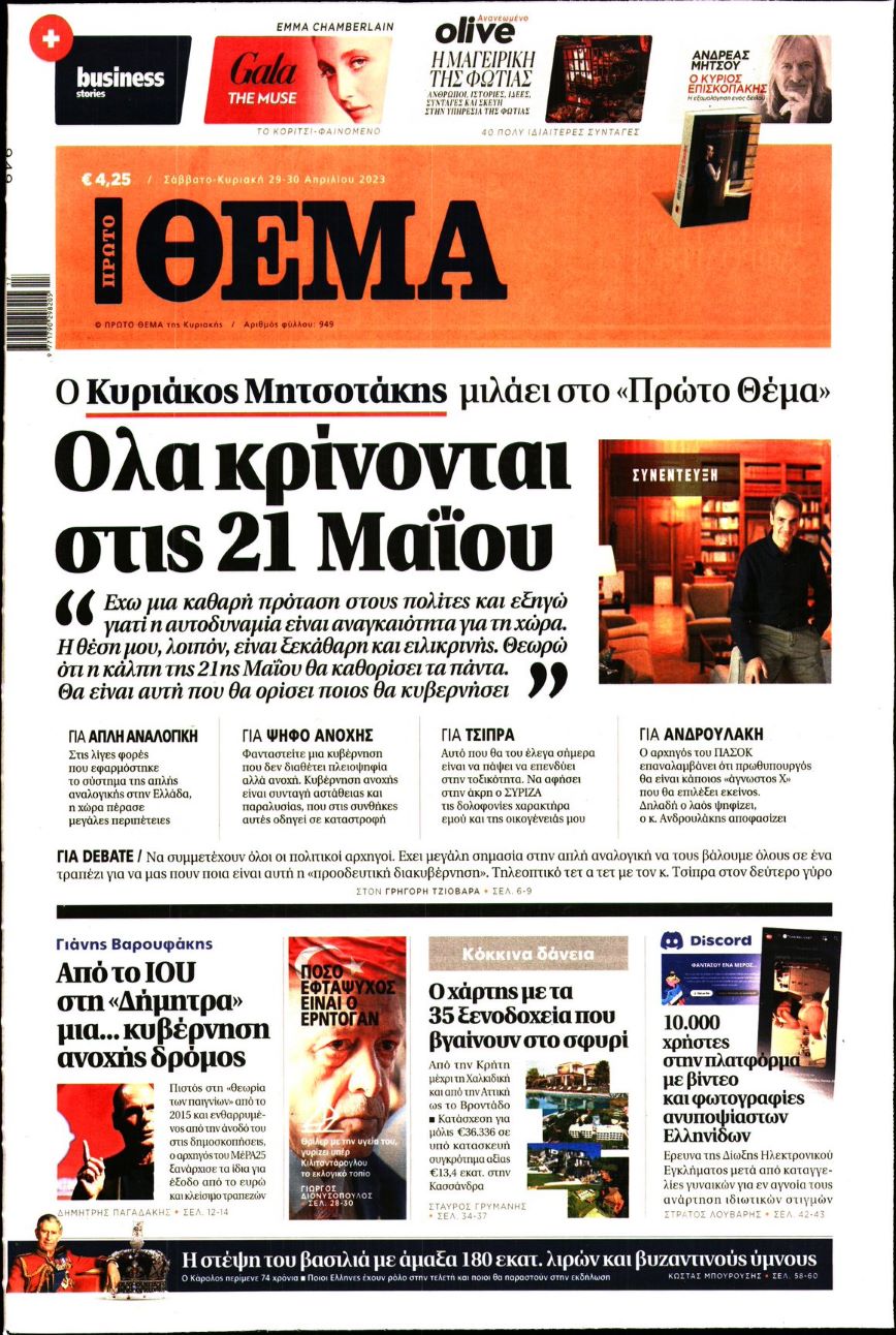Σε ρυθμούς εκλογών κινούνται τα πρωτοσέλιδα των εφημερίδων του Σαββάτου, λίγες εβδομάδες πριν τη μάχη της κάλπης της 21ης Μαΐου.