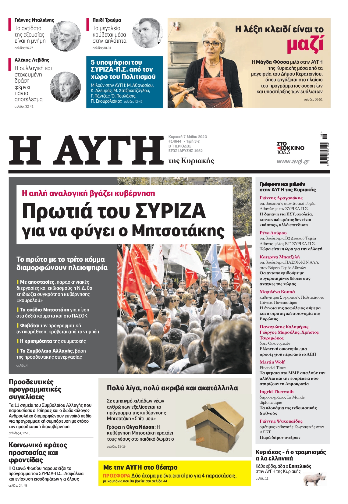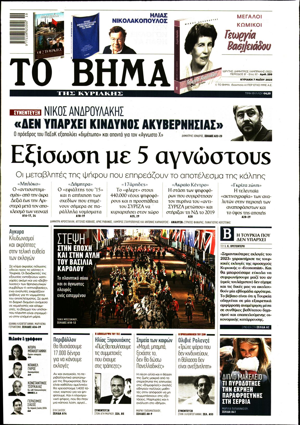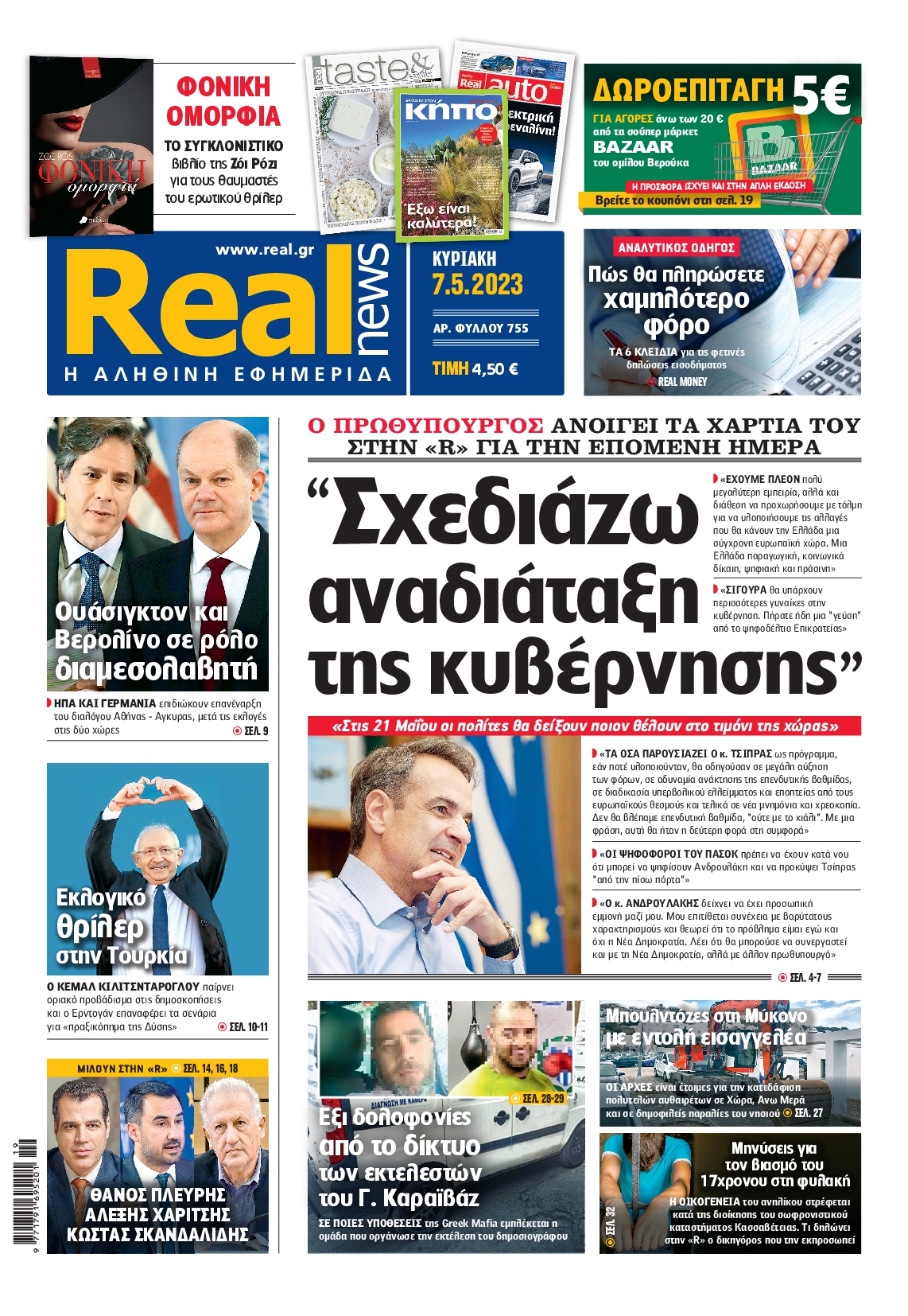 Τα δεδομένα ενόψει των εκλογών της 21ης Μαΐου και οι εκλογές στην Τουρκία ξεχωρίζουν στα πρωτοσέλιδα των κυριακάτικων εφημερίδων.