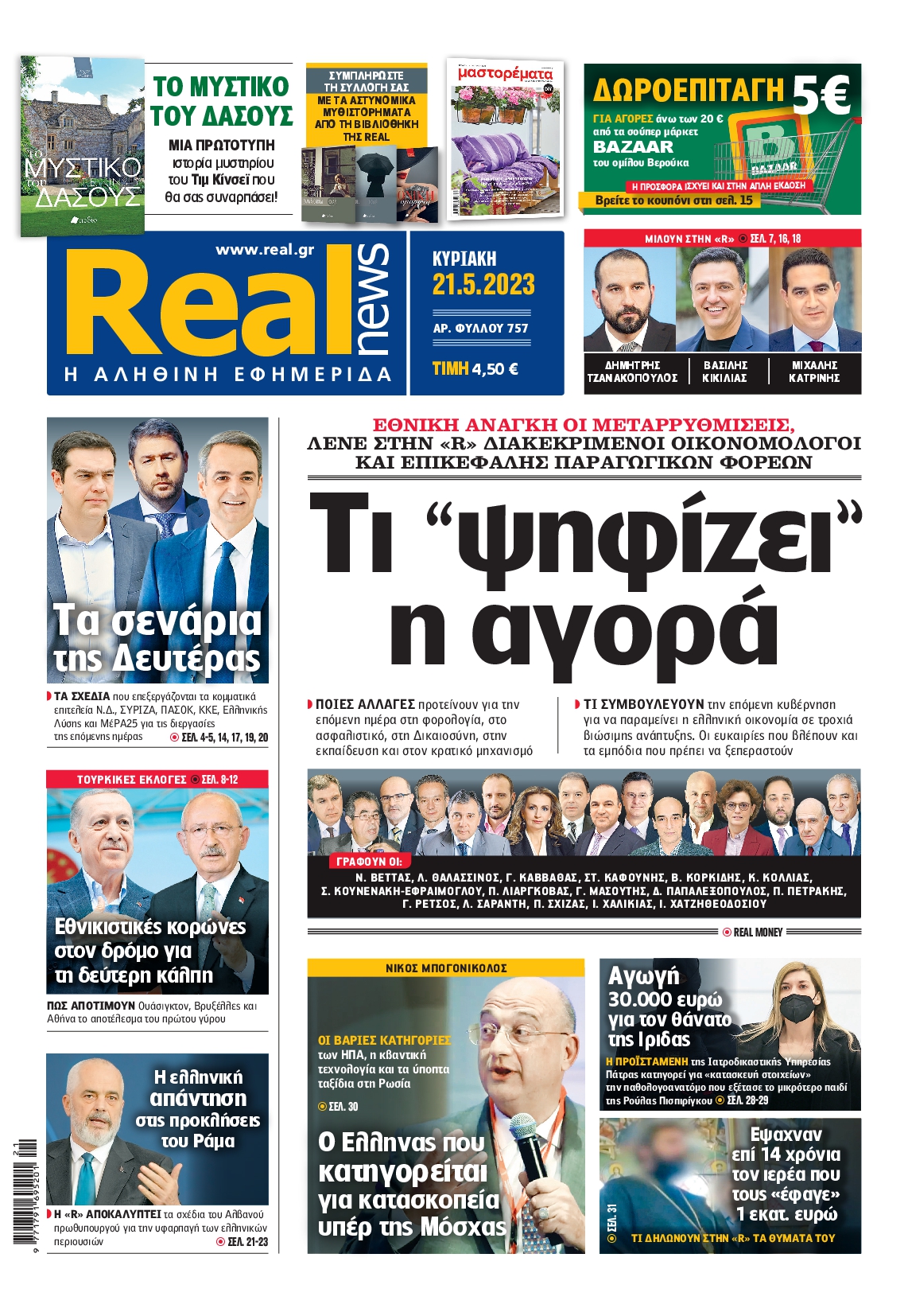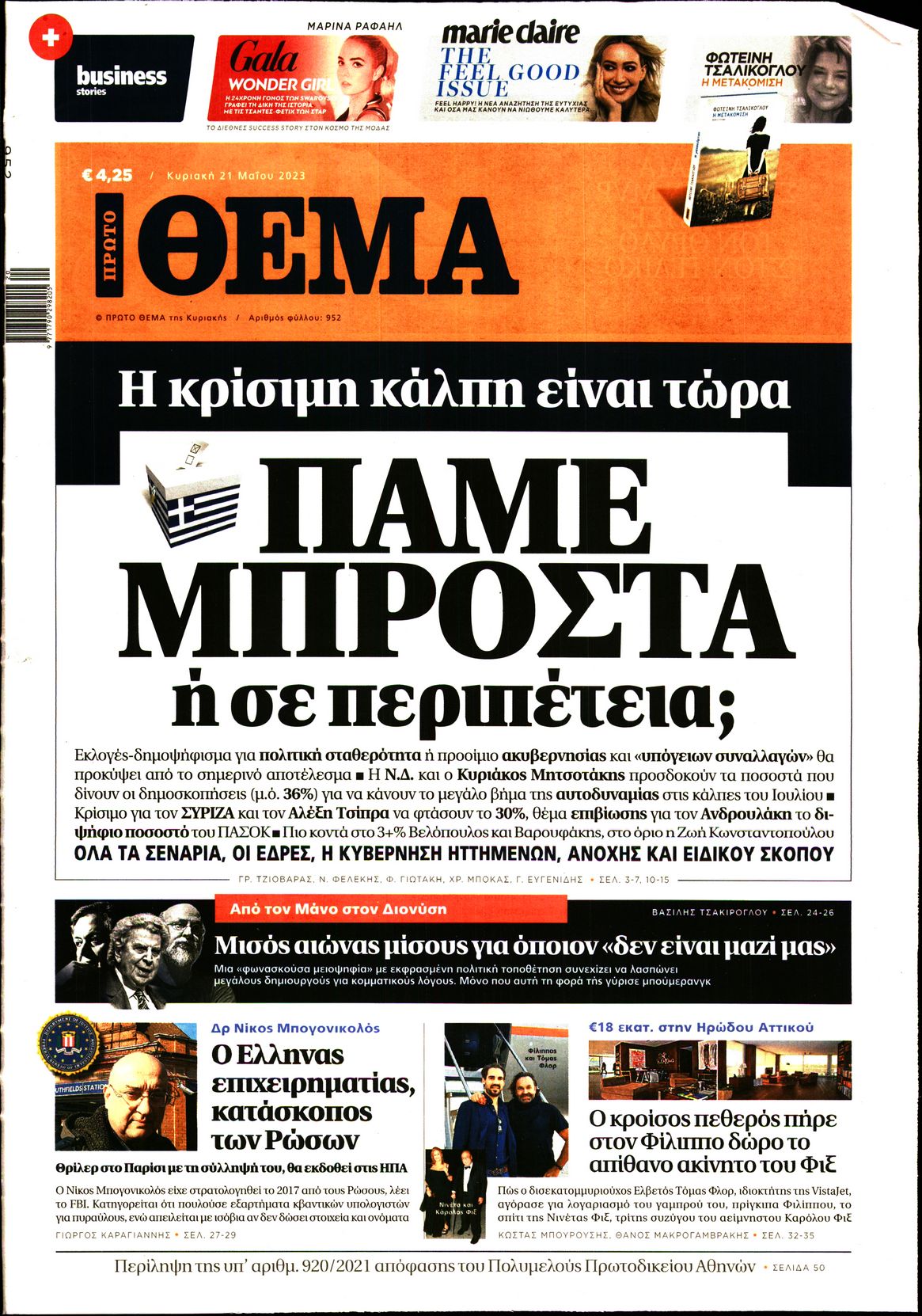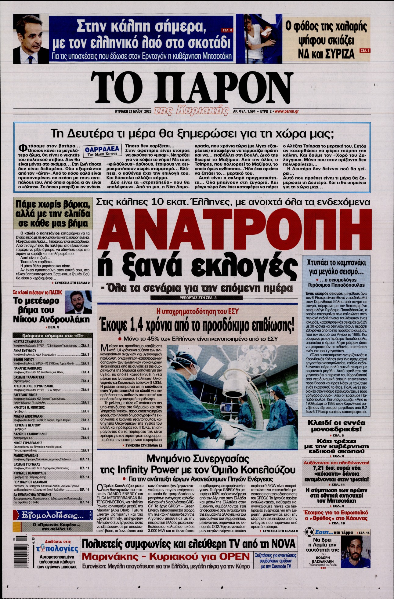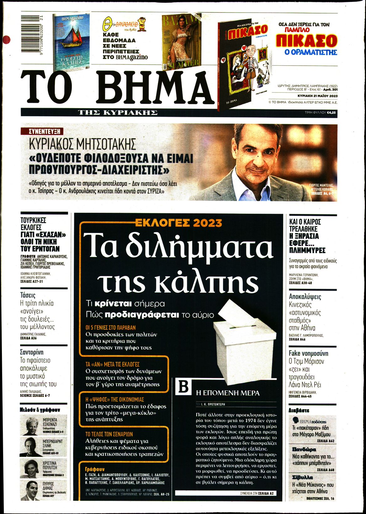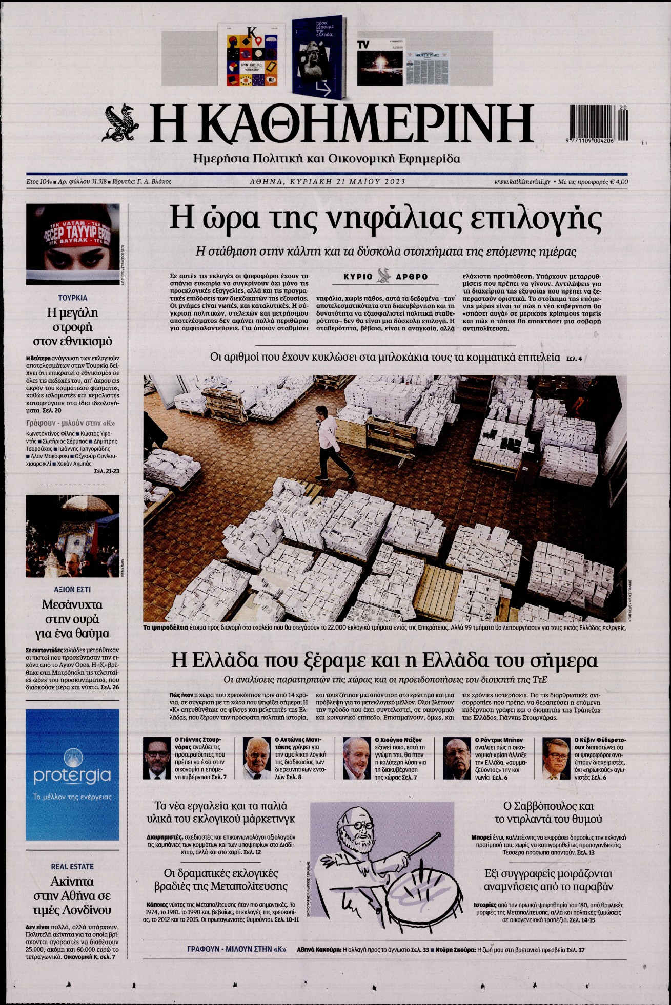 Οι εκλογές της 21ης Μαΐου και οι συνέπειες που θα έχουν τα αποτελέσματά τους κυριαρχούν στα πρωτοσέλιδα των κυριακάτικων εφημερίδων.