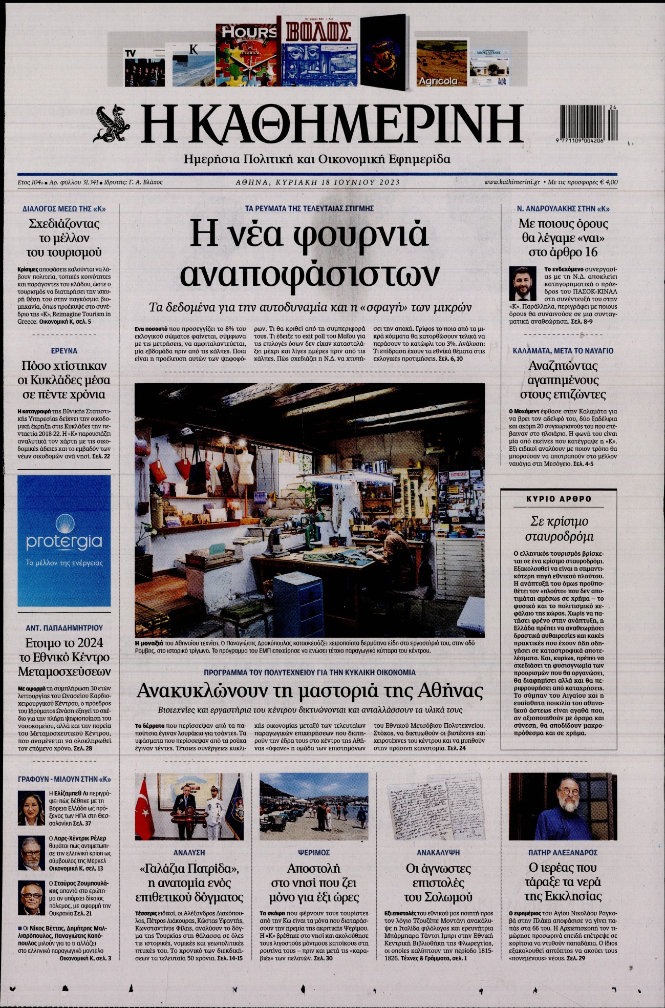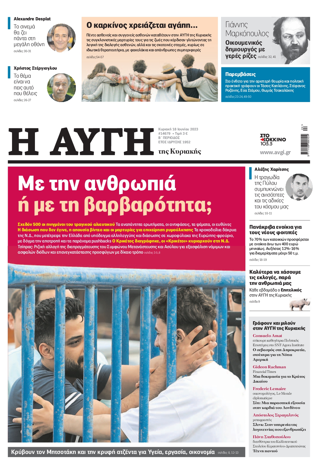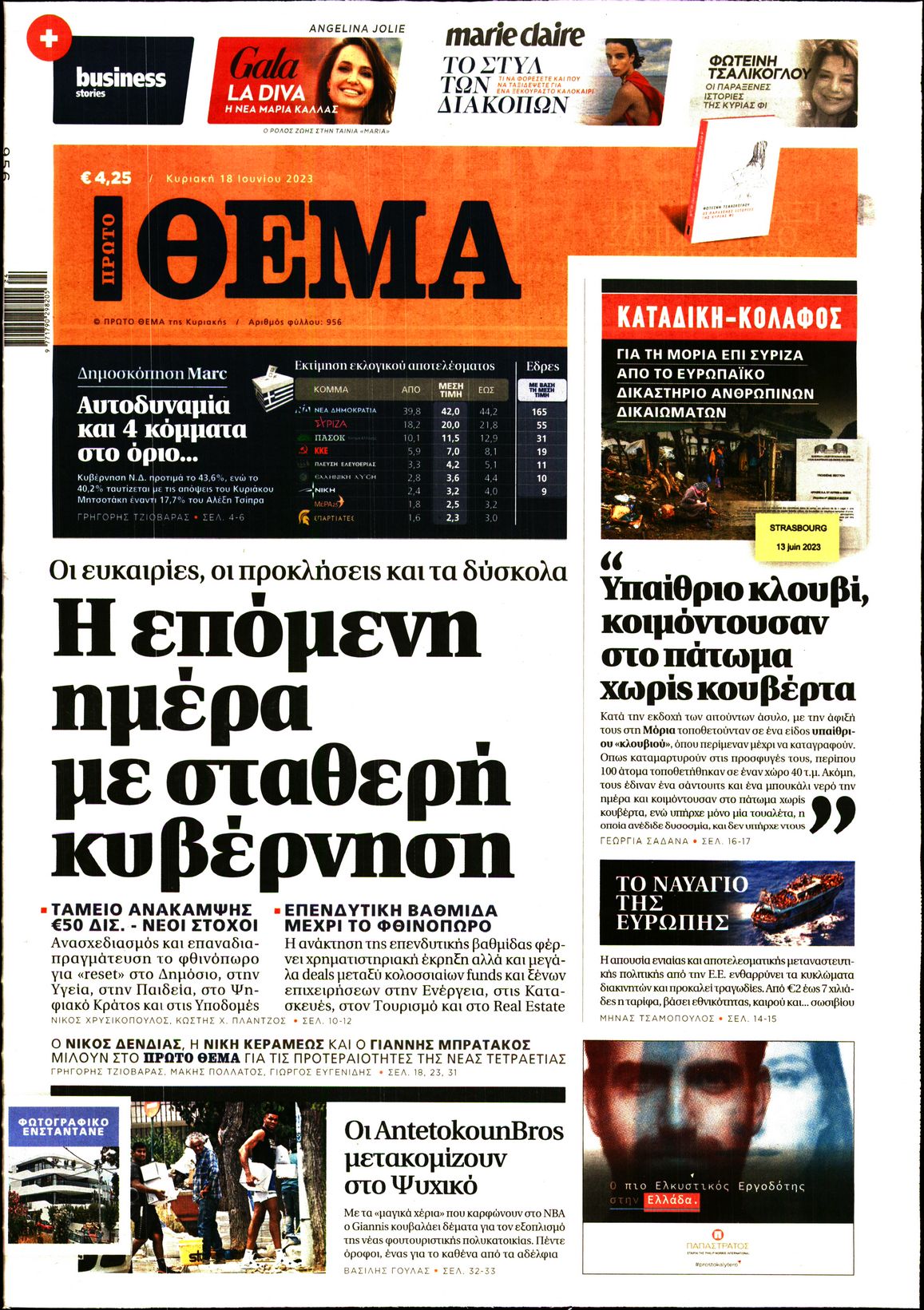 Τα δεδομένα ενόψει των κρίσιμων εκλογών της 25ης Ιουνίου, το ναυάγιο στην Πύλο και οι βάσεις στις Πανελλήνιες ξεχωρίζουν στα πρωτοσέλιδα των κυριακάτικων εφημερίδων.