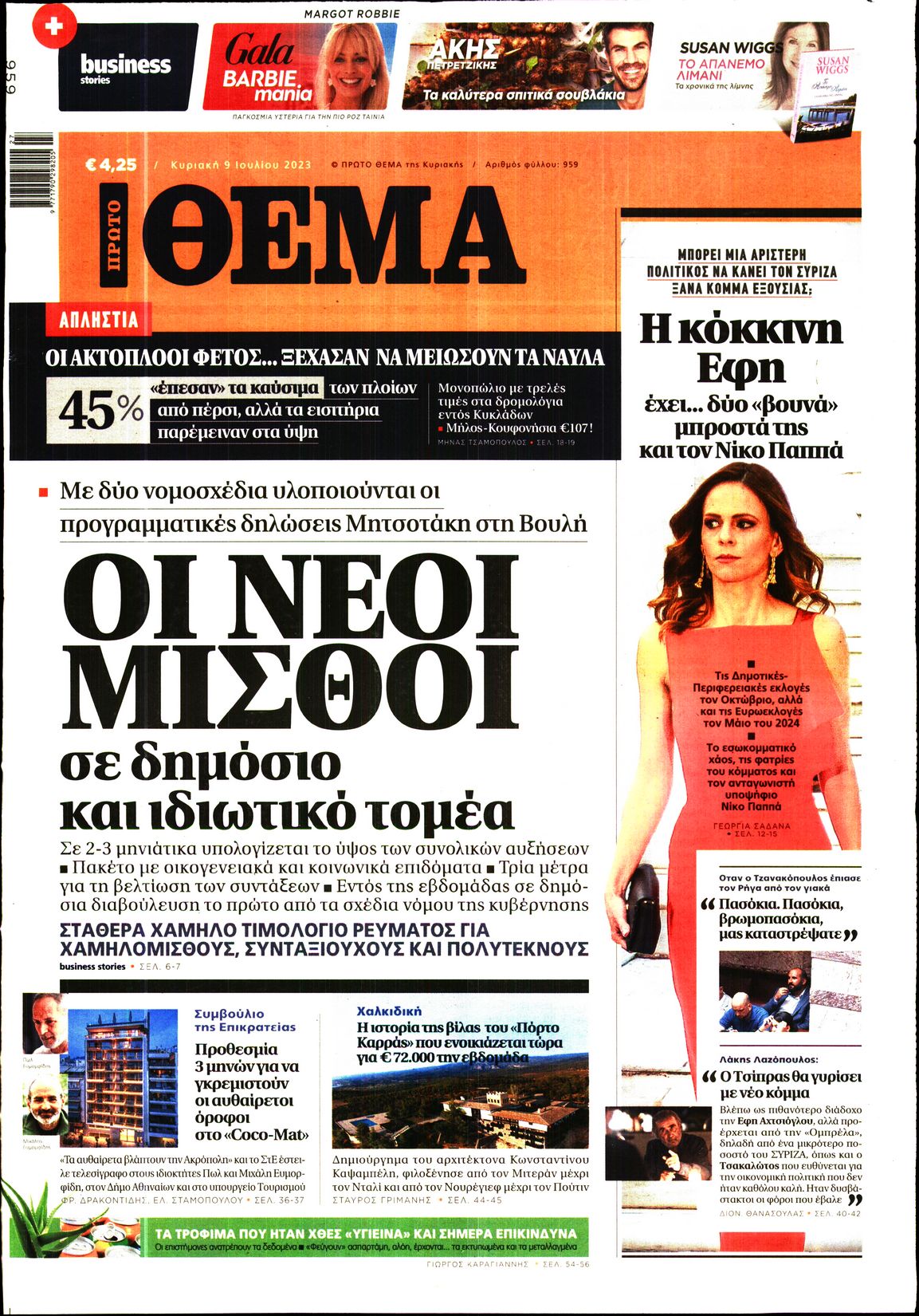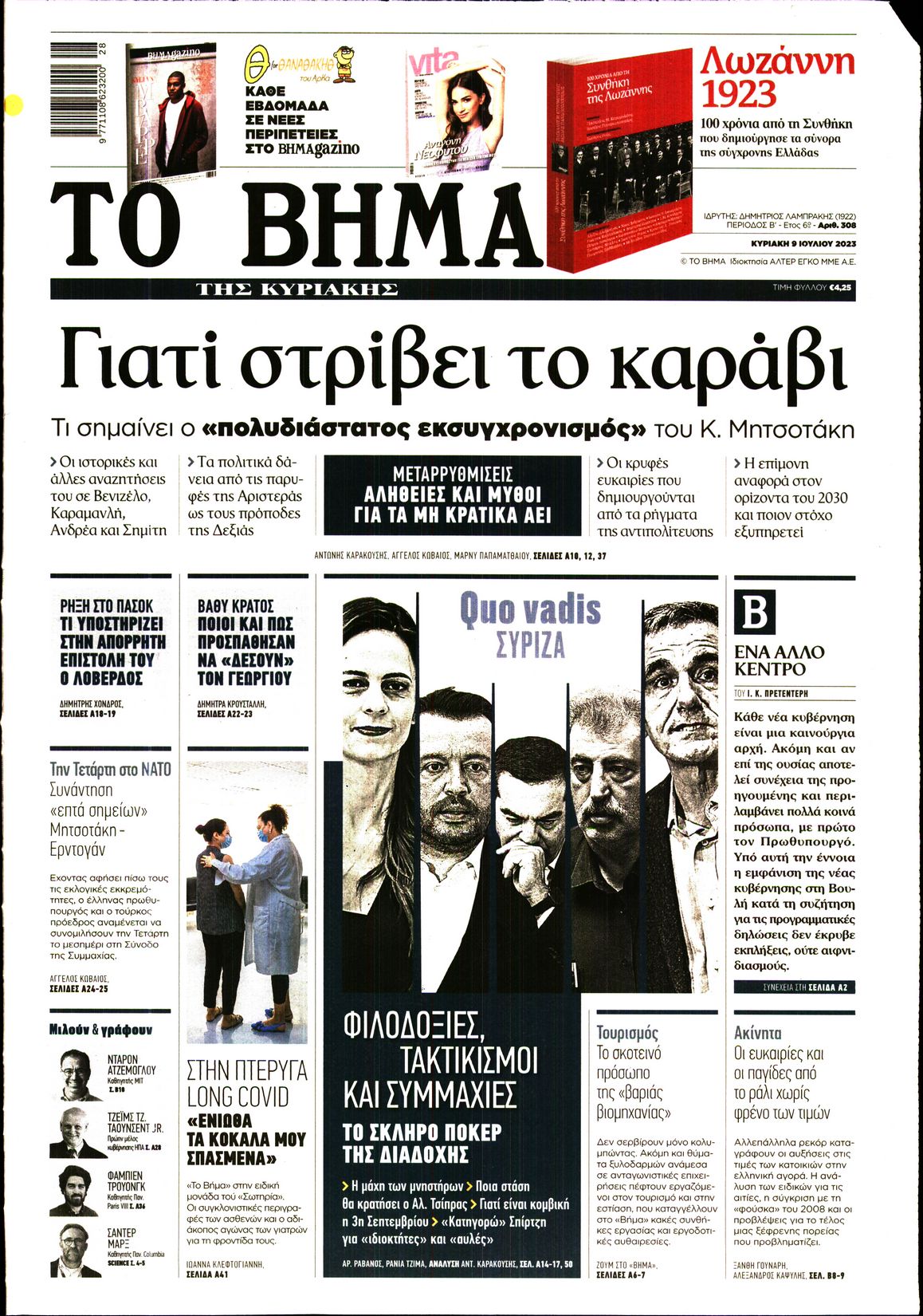 Οι επόμενες κινήσεις της κυβέρνησης του Κυριάκου Μητσοτάκη μετά τις προγραμματικές δηλώσεις στη Βουλή και οι εξελίξεις στον ΣΥΡΙΖΑ ξεχωρίζουν μεταξύ άλλων στα πρωτοσέλιδα των κυριακάτικων εφημερίδων.