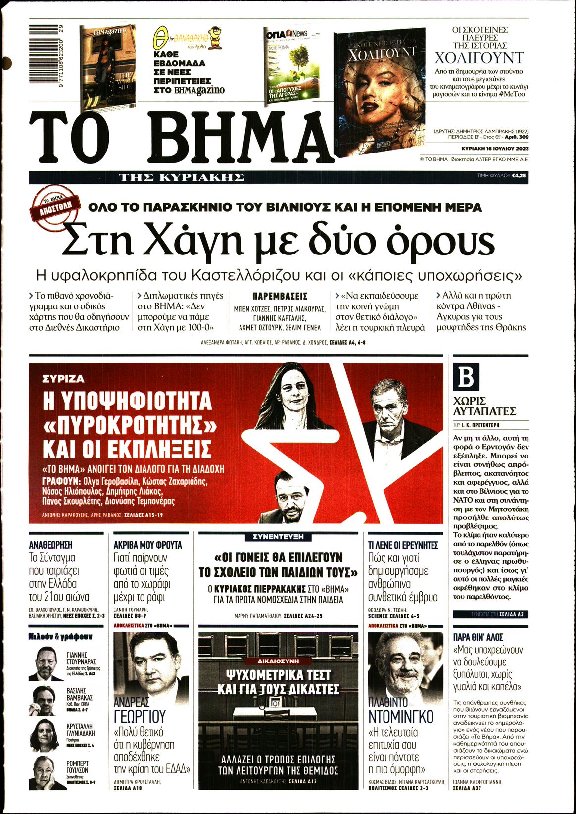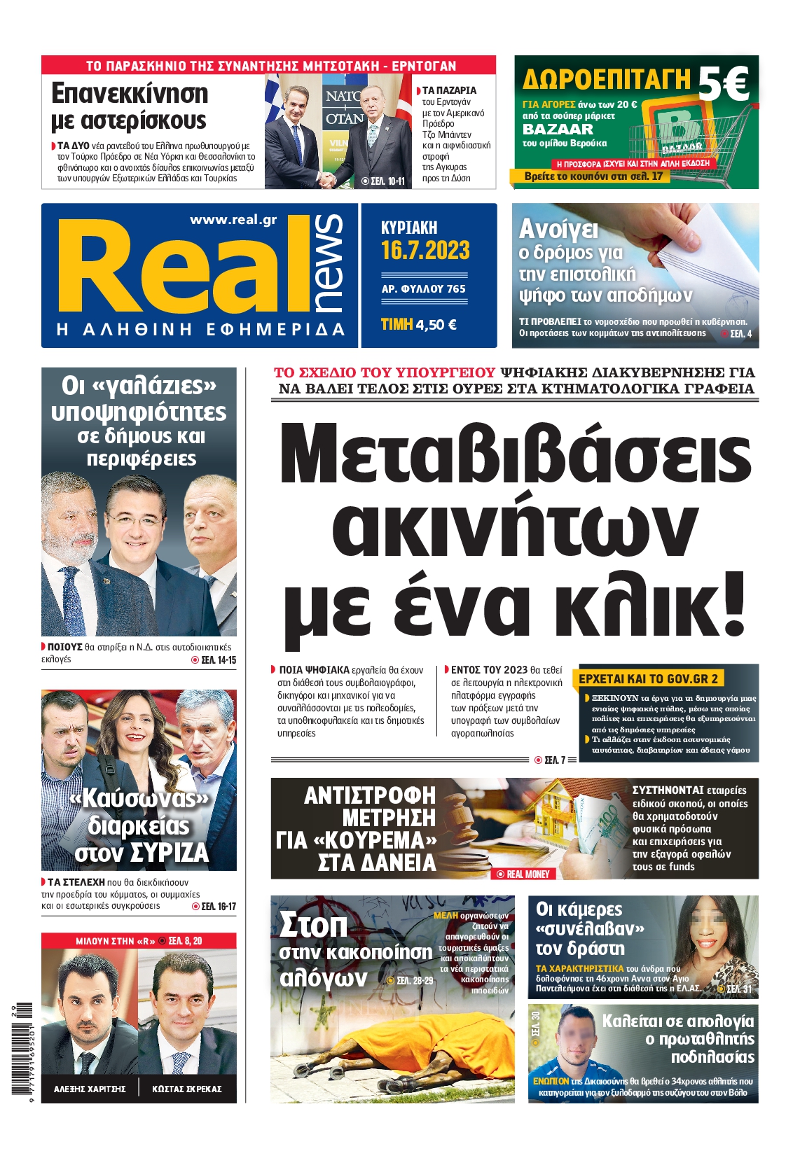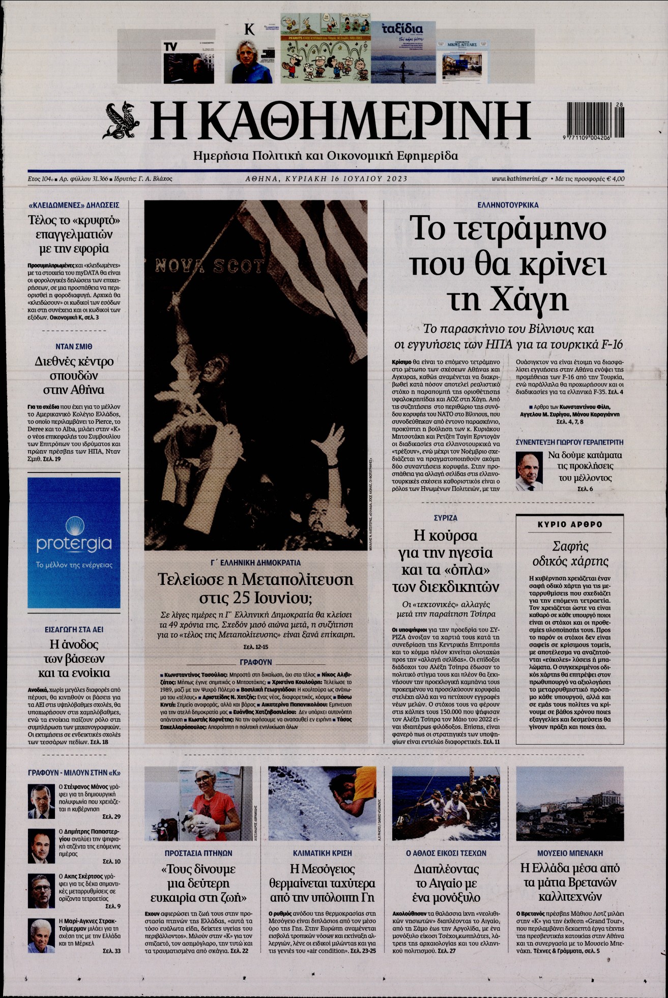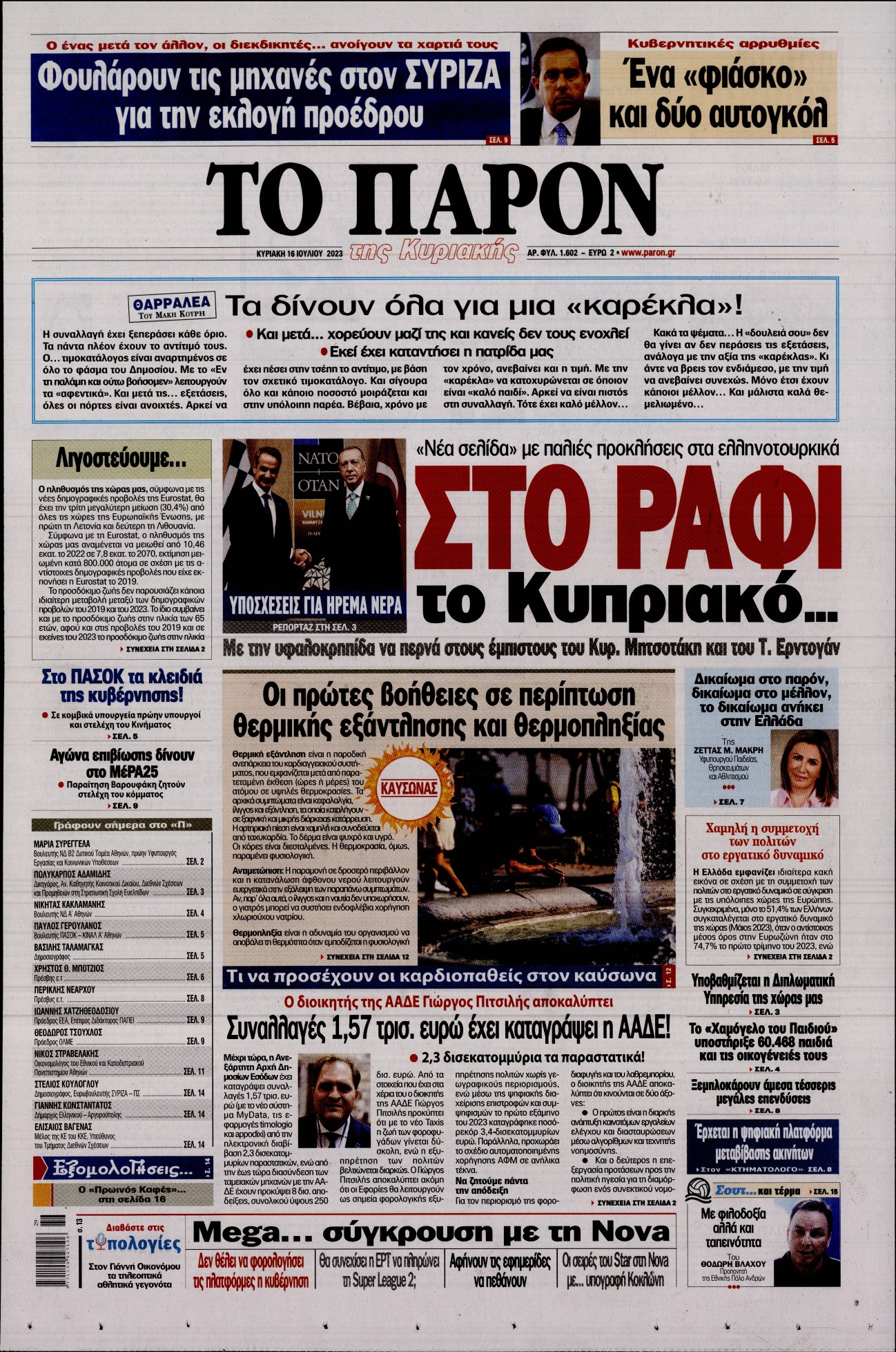 Οι σχέσεις μεταξύ Ελλάδας και Τουρκία μετά τη συνάντηση του Κυριάκου Μητσοτάκη με τον Ρετζέπ Ταγίπ Ερντογάν, αλλά και οι εξελίξεις στον ΣΥΡΙΖΑ ξεχωρίζουν μεταξύ άλλων στα πρωτοσέλιδα των κυριακάτικων εφημερίδων.