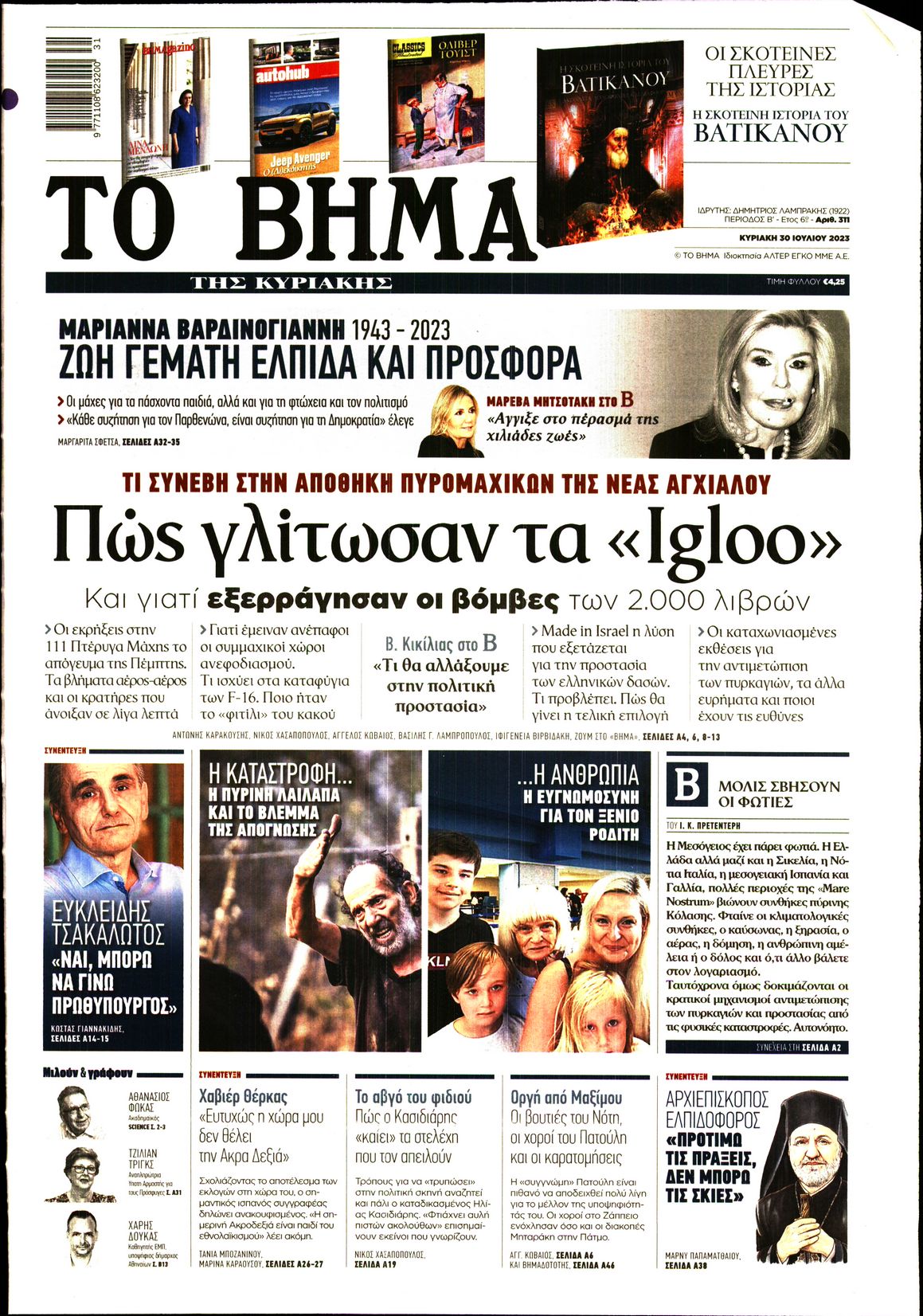 Οι φωτιές που συγκλονίζουν και αυτό το καλοκαίρι την Ελλάδα, αλλά και το περιστατικό με την έκρηξη πυρομαχικών στην αποθήκη της Νέας Αγχιάλου, μονοπωλούν τα πρωτοσέλιδα των κυριακάτικων εφημερίδων. Για να τα δείτε, πατήστε ΕΔΩ