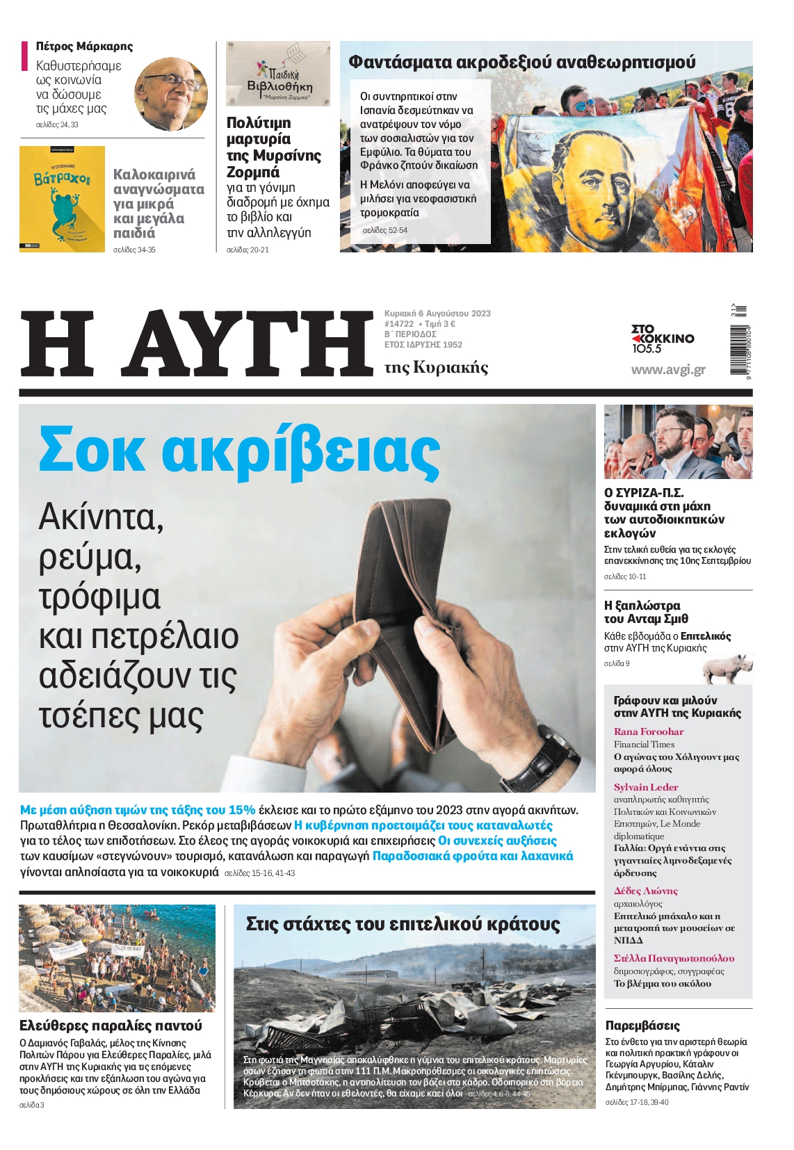Το «Κίνημα της πετσέτας» που αρχίζει να κυριαρχεί στις ελληνικές παραλίες και η μάχη με την ακρίβεια ξεχωρίζουν μεταξύ άλλων στα πρωτοσέλιδα των κυριακάτικων εφημερίδων.