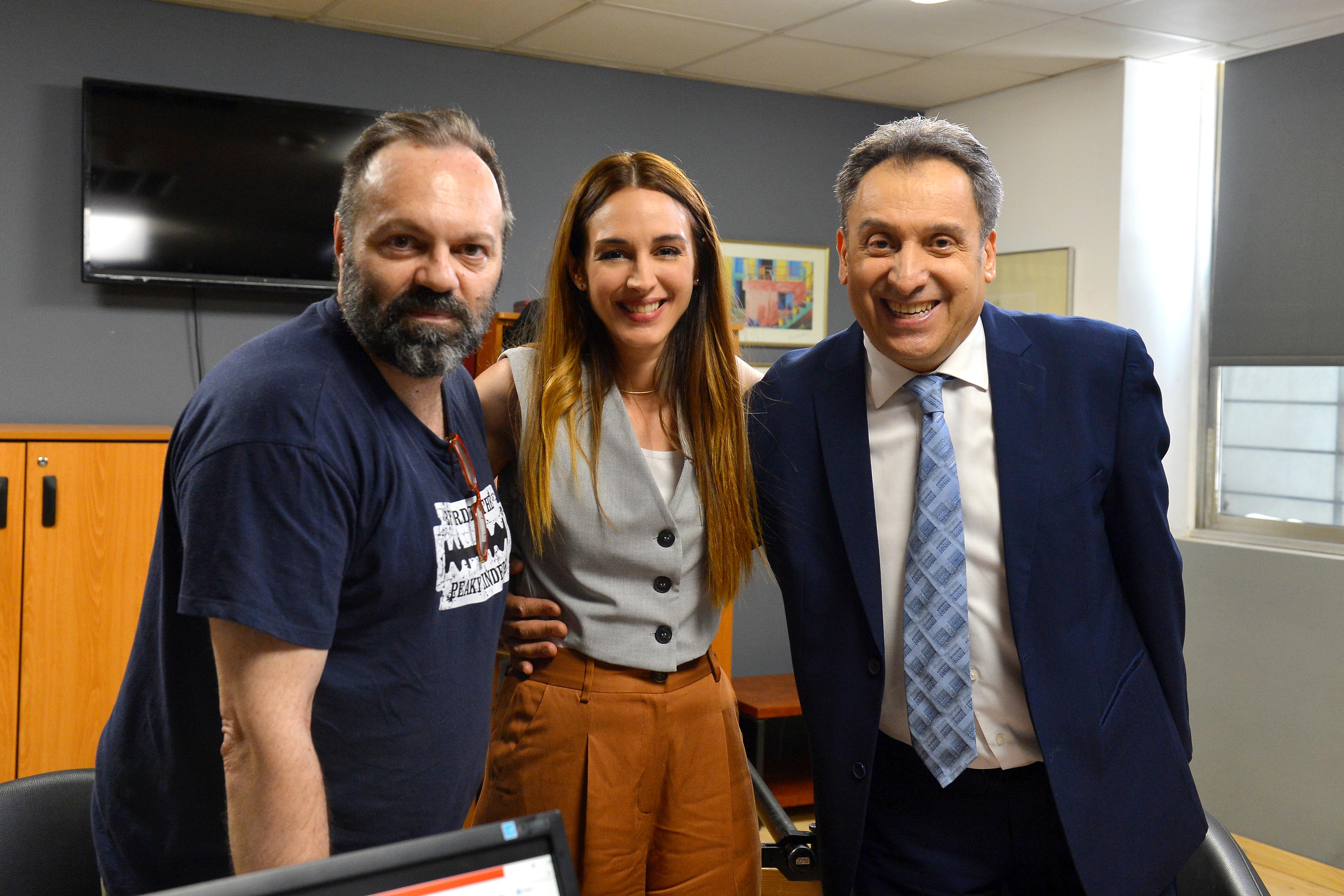 Ο σκηνοθέτης Χάρης Μαζαράκης, Bίκυ Παπαδοπούλου, Πάνος Σταθακόπουλος