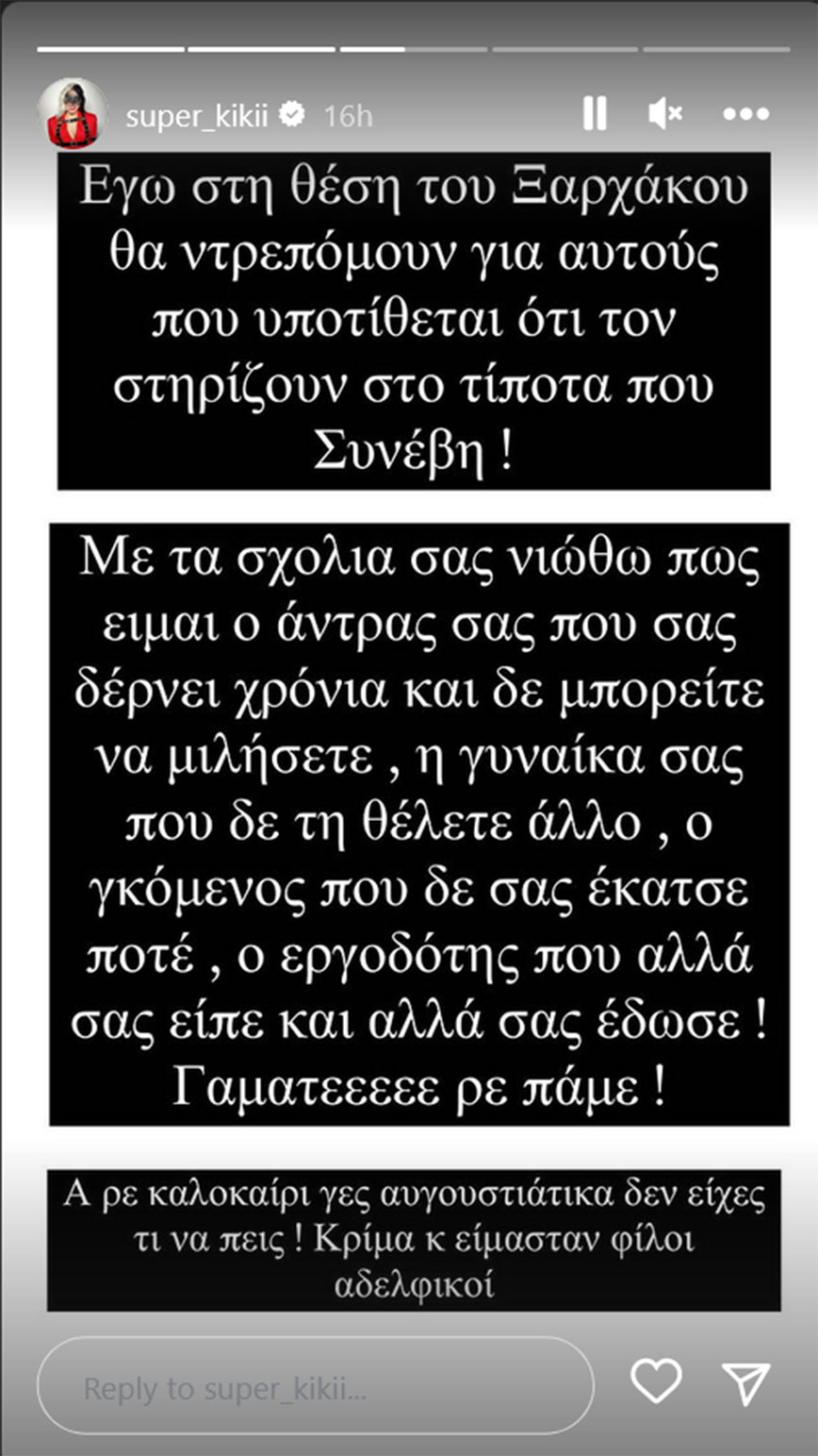 Συγκεκριμένα, η Σούπερ Κική έγραψε στο story της:
