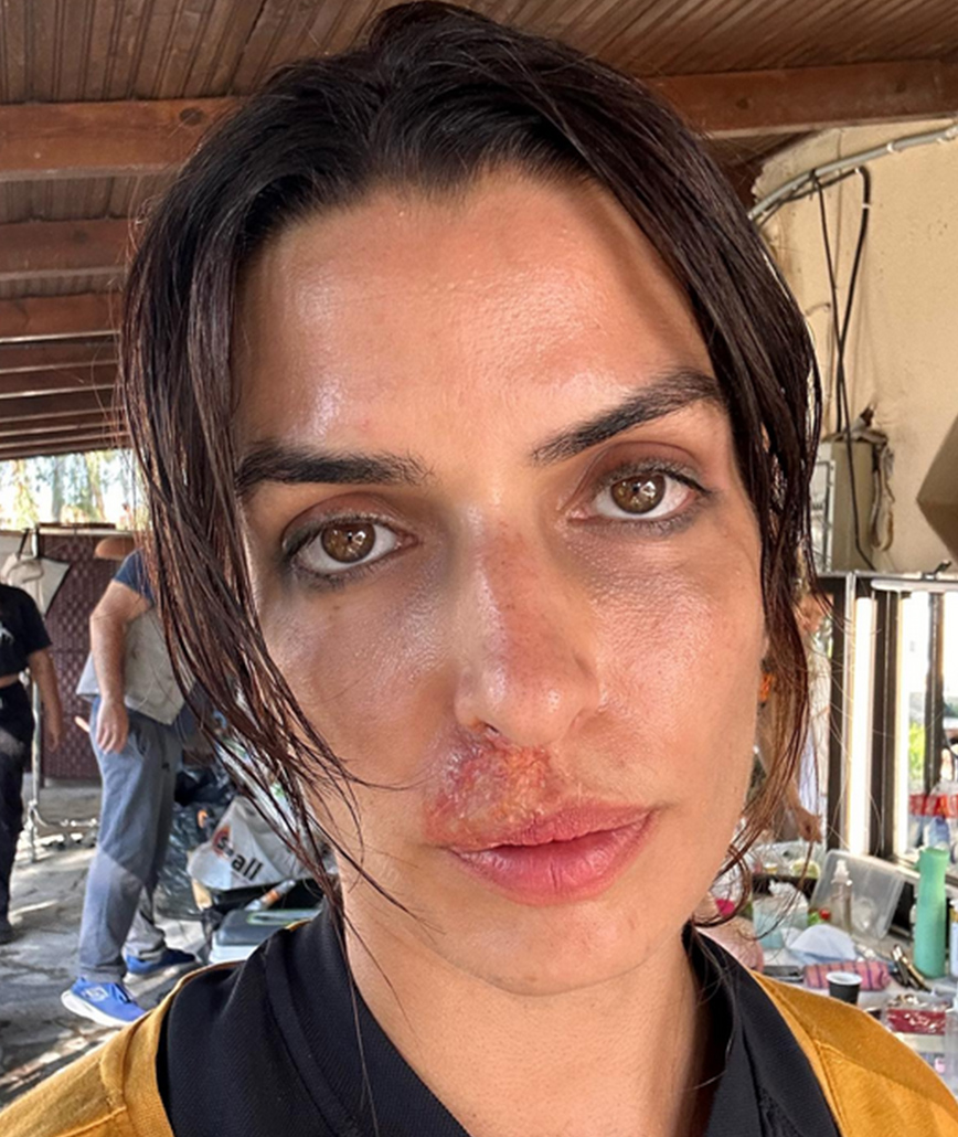 Με μια ουλή πάνω από τα χείλη της, η Τόνια Σωτηροπούλου πόζαρε στις νέες φωτογραφίες που ανέβασε στον προσωπικό της λογαριασμό στο Instagram και τρόμαξε τους ακολούθους της. Ωστόσο, η ουλή φαίνεται πως είναι αποτέλεσμα μακιγιάζ, καθώς ο Βασίλης Κεκάτος έκανε τα μαγικά του στο πρόσωπό της και τη μετέτρεψε σε χτυπημένη.