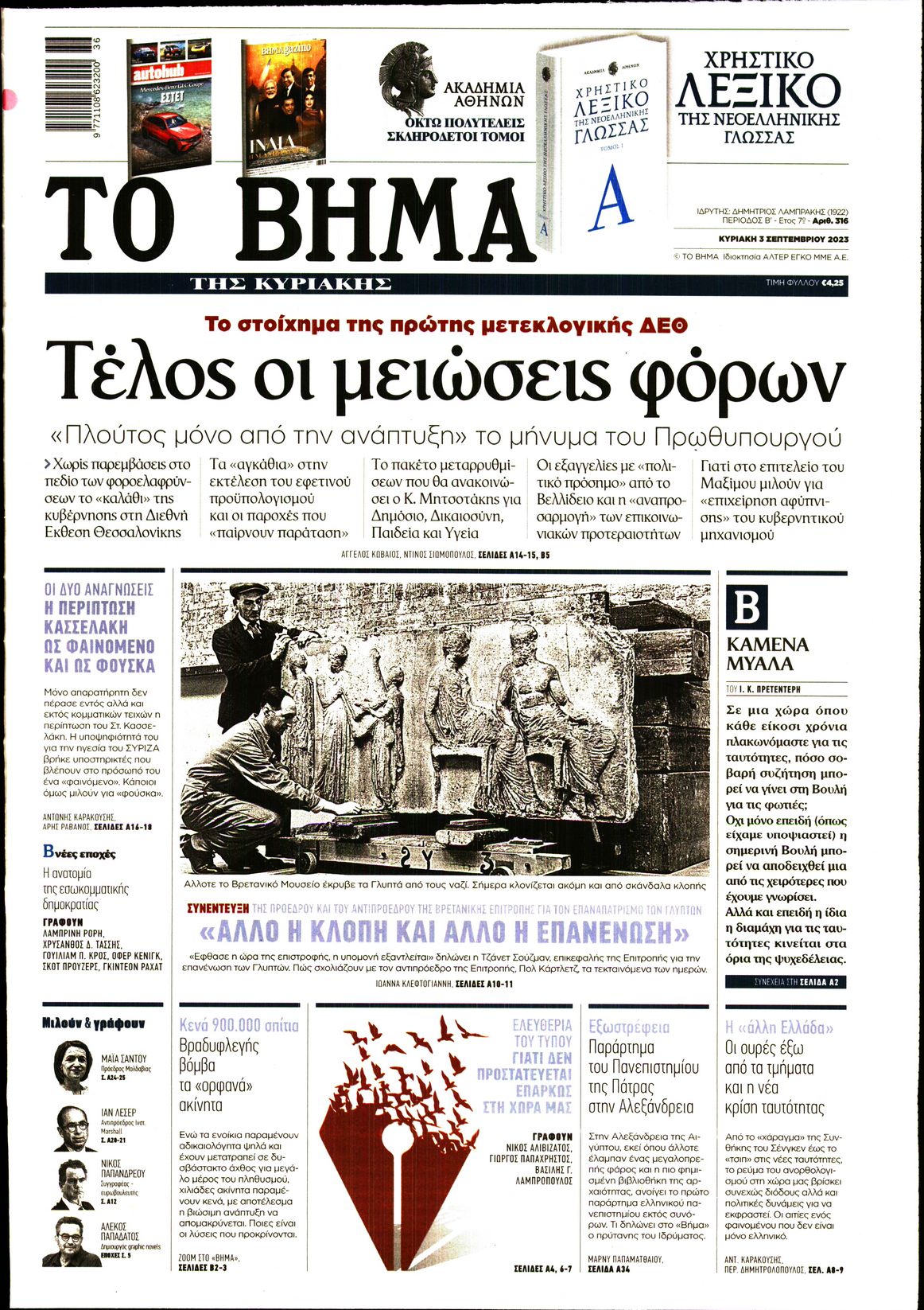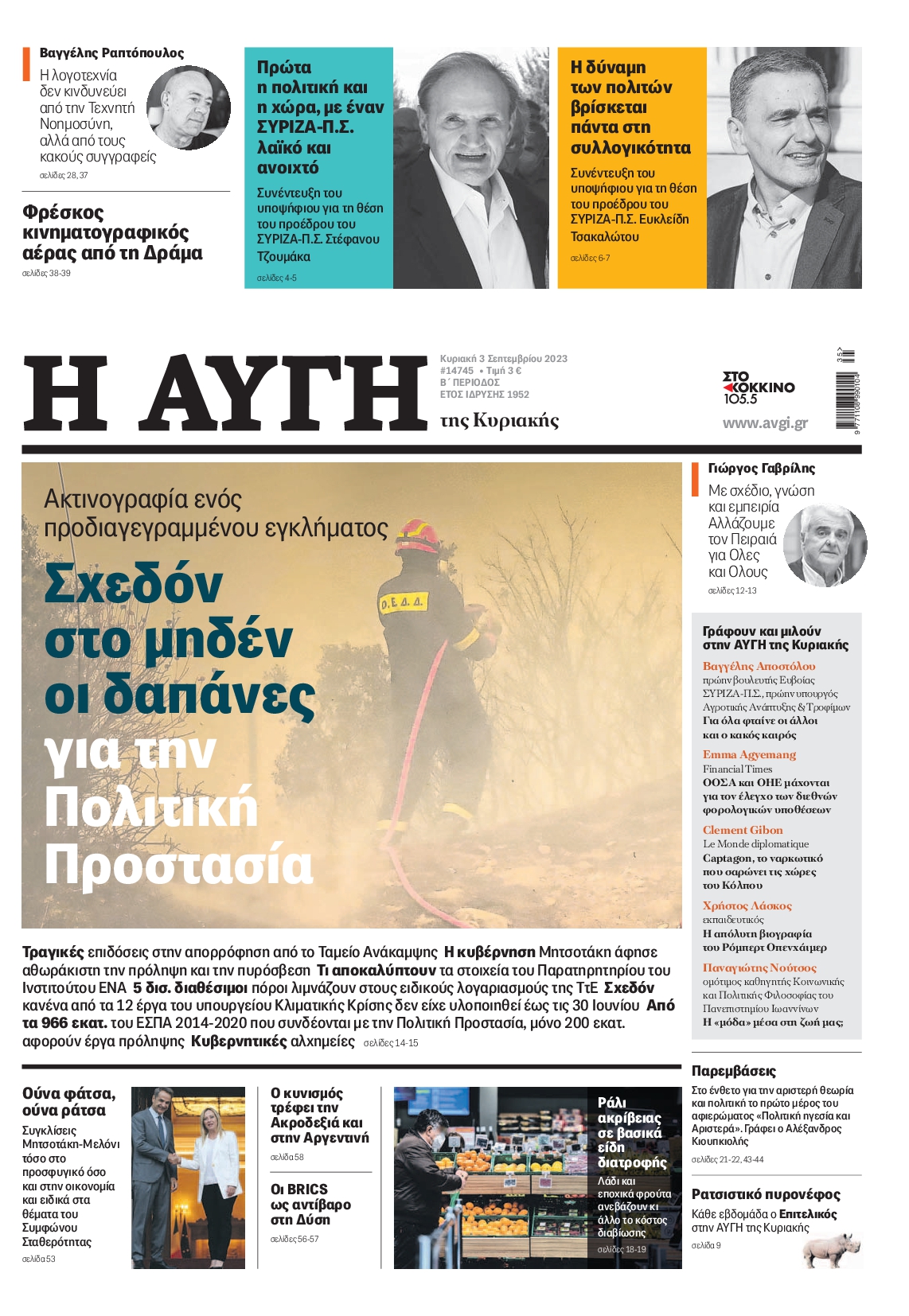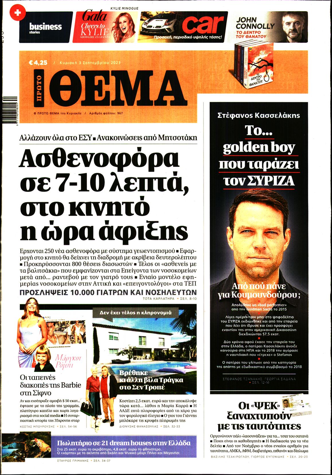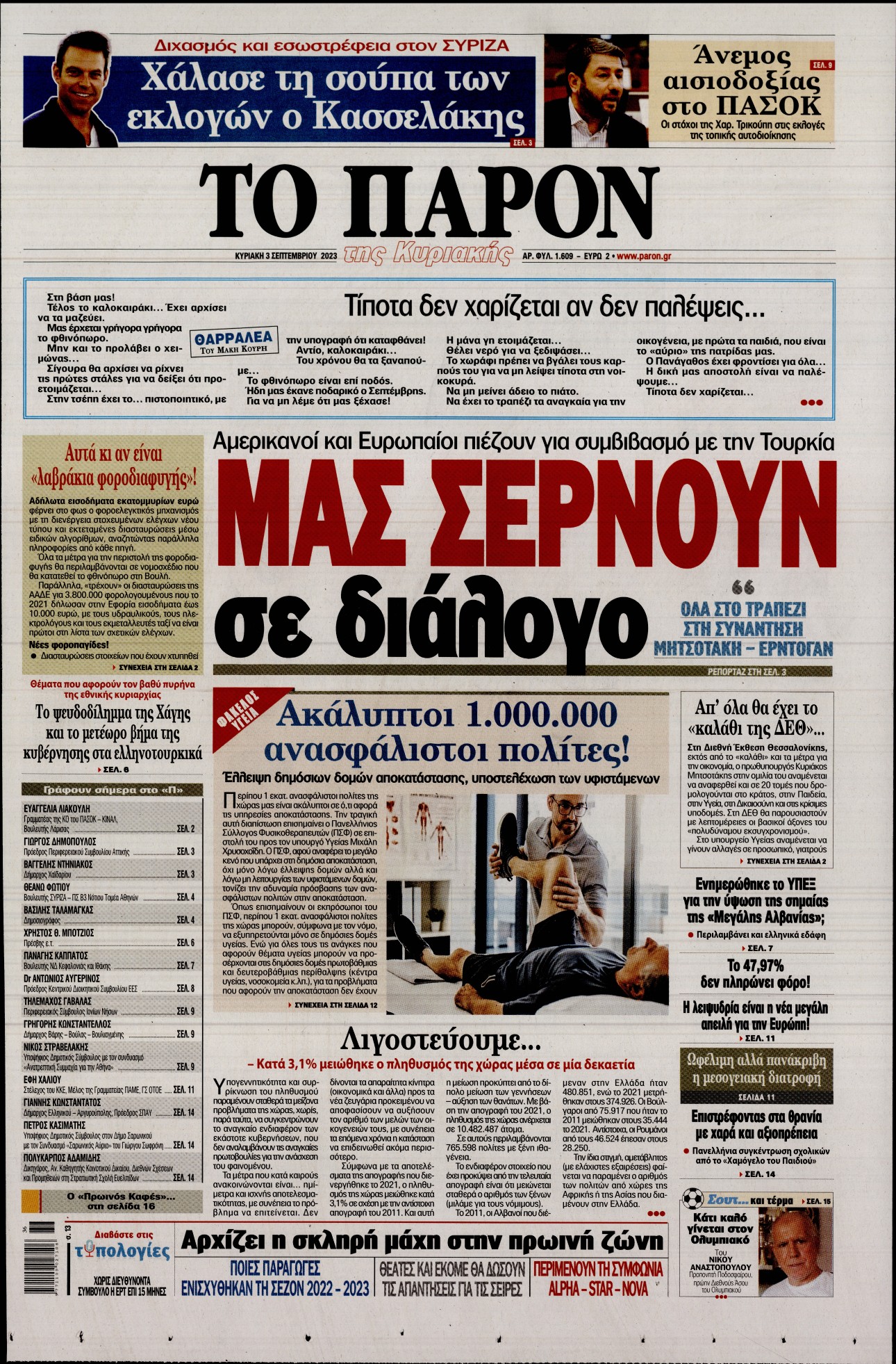 Οι προετοιμασίες του πρωθυπουργού ενόψει ΔΕΘ, η προσθήκη του Στέφανου Κασσελάκη στη κούρσα για την προεδρία του ΣΥΡΙΖΑ και η αναταραχή στους Σπαρτιάτες ξεχωρίζουν μεταξύ άλλων στα πρωτοσέλιδα των κυριακάτικων εφημερίδων.