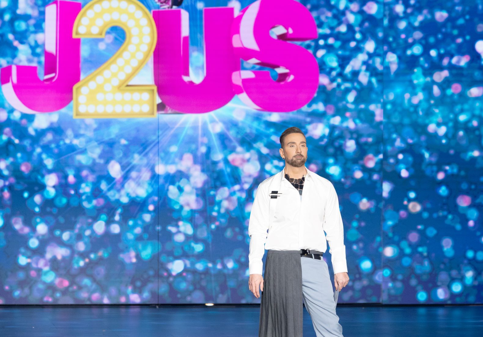 Ο παρουσιαστής του show έκανε δυναμική είσοδο στη σκηνή, διασκευάζοντας το νικητήριο κομμάτι της Eurovision «The Code», προσαρμόζοντας τους στίχους με χιούμορ στο κόνσεπτ του J2US και απογείωσε το κέφι!