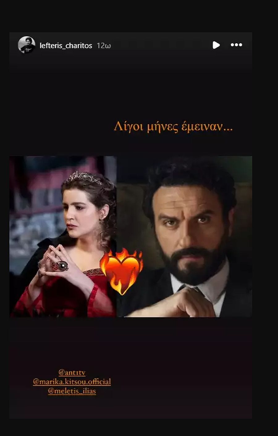 «Λίγοι μήνες έμειναν» αρκέστηκε να γράψει ο Λευτέρης Χαρίτος στην ιστορία που ανήρτησε στον προσωπικό του λογαριασμό στο Instagram. Μια ιστορία που αναδημοσίευσε η Μαρία Κίτσου στο δικό της προφίλ, η οποία και θα βρεθεί ξανά καλλιτεχνικά με τον γνωστό σκηνοθέτη μετά από τις επιτυχημένες «Άγριες Μέλισσες».
