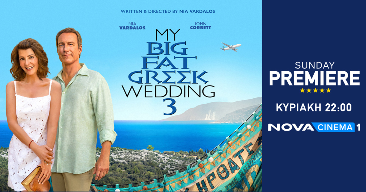 Άρωμα και χρώμα Ελλάδας έχει αυτή η Κυριακή (23/6, 22:00 Novacinema1) στη ζώνη Sunday Premiere της Nova! Το 3ο sequel της ρομαντικής κομεντί «Γάμος αλά ελληνικά» («My Big Fat Greek Wedding 3», 2023 διάρκεια 92’) έρχεται να προσφέρει μοναδικές στιγμές γέλιου, δυνατών συναισθημάτων και ελληνικού ταπεραμέντου.