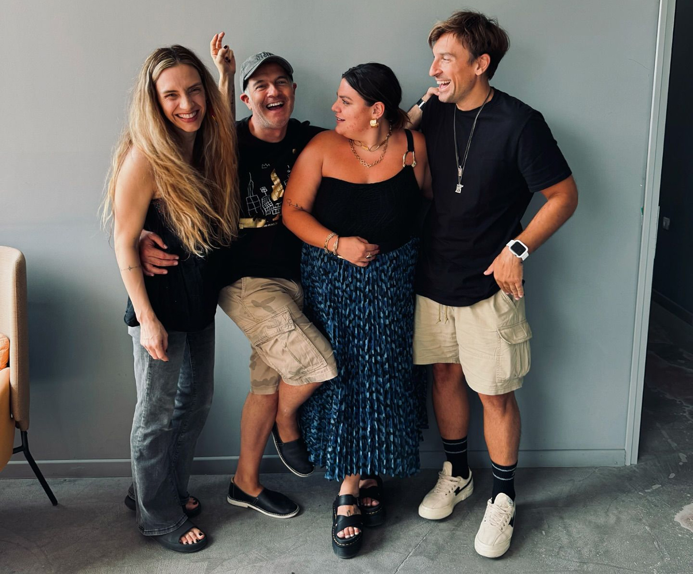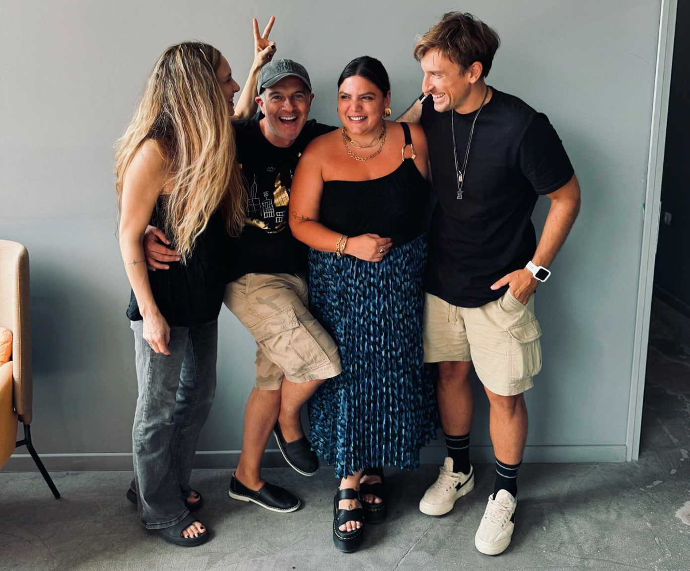 H Δανάη Μπάρκα χαρούμενη πόζαρε στον φακό με τη Μαρία Ένεζλη, τον Άρη Καβατζίκη και τον Γιώργο Κρικοριάν.
