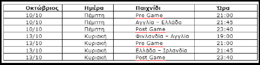 Απευθείας μεταδόσεις και εκπομπές Εθνικής Ελλάδας ποδοσφαίρου τον Οκτώβριο: