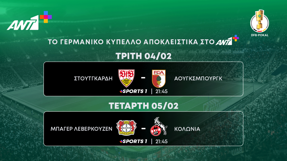 Οι συνδρομητές του ΑΝΤ1+ (antennaplus.gr) θα απολαύσουν έναν μήνα γεμάτο ποδοσφαιρική δράση, αγωνία και θέαμα, με αποκλειστικές μεταδόσεις υψηλού επιπέδου από τα Κύπελλα Γερμανίας, Γαλλίας και Ολλανδίας.