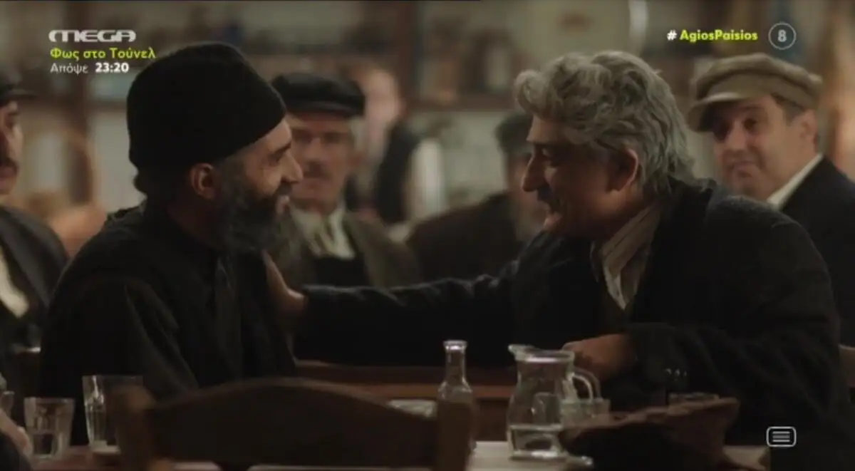 Στην τελευταία σκηνή, λοιπόν, του νέου επεισοδίου είδαμε τον Άγιο Παΐσιο να συναντά τον Ιορδάνη στο καφενείο του χωριού όπου βρέθηκε για να αναζητήσει τα χειρόγραφα του Αρσένιου. Ο Ιορδάνης δεν έκρυψε την μεγάλη του χαρά και έκπληξη όταν ενημερώθηκε για την ταυτότητα του Αγίου Παϊσίου.