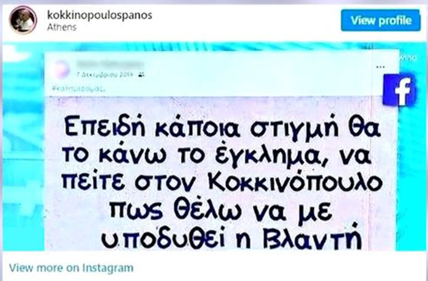 «Επειδή κάποια στιγμή θα το κάνω το έγκλημα, να πείτε στον Κοκκινόπουλο πως θέλω να με υποδυθεί η Βλαντή».
