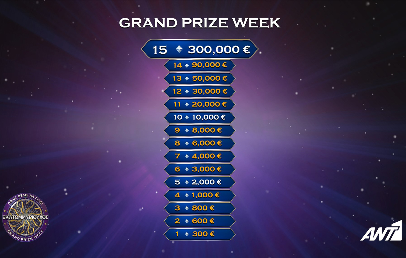 Οι κανόνες της εβδομάδας «Grand Prize» με έπαθλο 300.000 ευρώ