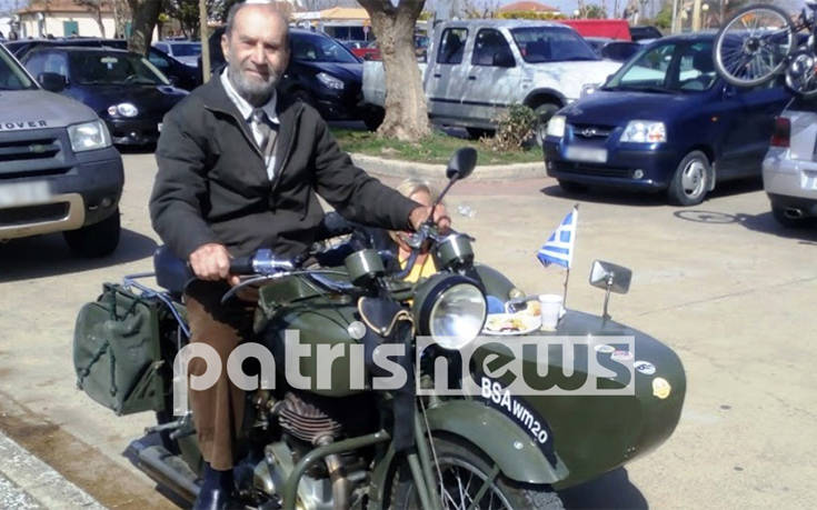 Με μηχανές του Β΄ Παγκοσμίου πολέμου κυκλοφορεί το μισό χρόνο στην Αμαλιάδα ο 87χρονος Νίκος Δευτεραίος και η σύζυγός του Φωτεινή η οποία κάθεται στο ειδικό καλαθάκι που βρίσκεται δίπλα στις άριστα συντηρημένες μοτοσυκλέτες BSA.