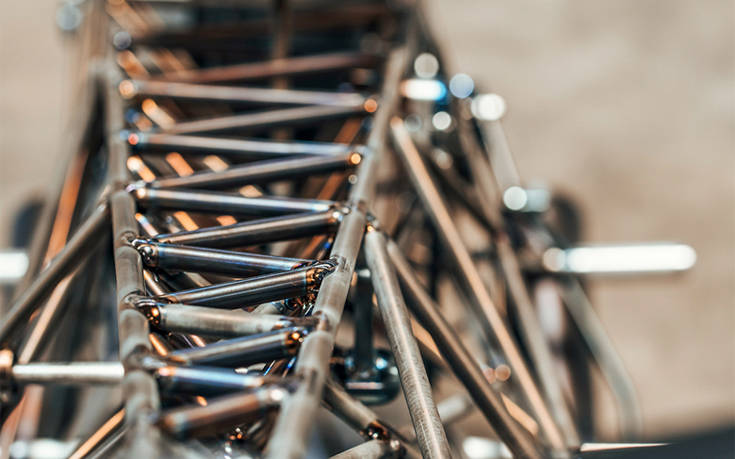 Τα 134 τμήματα τιτανίου του πλαισίου κόπηκαν και συγκολλήθηκαν με το χέρι εξάλλου.