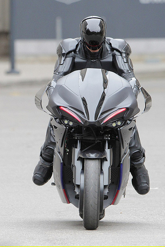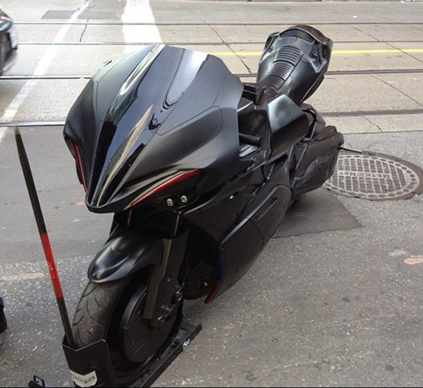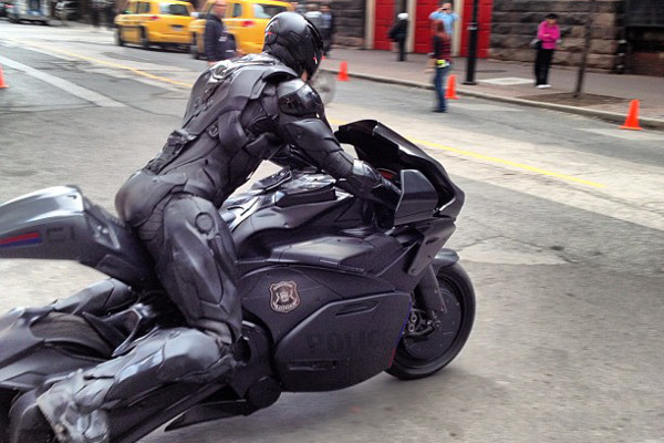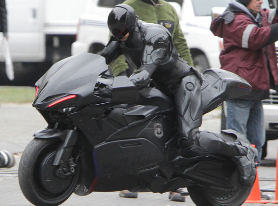 Η μοτοσυκλέτα: Στις φωτογραφίες δεν φαίνονται και πολλά από την πραγματική μοτοσυκλέτα κάτω από το κοστούμι που θυμίζει λίγο και Batmobil. Τα μπροστινά φρένα όμως αποκαλύπτους πως πρόκειται για ένα Kawasaki Z1000. Ντυμένο με πλαστικά παντού, ακολουθεί την υπερ-μυώδη, απειλητική αισθητική που χαρακτηρίζει το σάιμπερ-σώμα του Robocop.