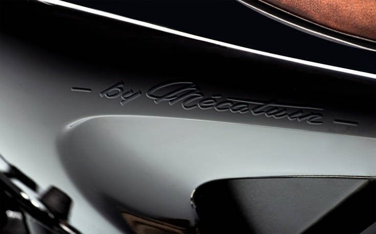 Καθαρές γραμμές κι ένα design σύγχρονο (ανθρακόνημα και κέβλαρ) και ταυτοχρόνως κλασικό μπολιάστηκαν με τα δέρματα του γαλλικού οίκου, τα οποία πέρασαν στις μπότες και το κράνος για ακόμα πιο κομψό στιλ στον αναβάτη του σήμερα.