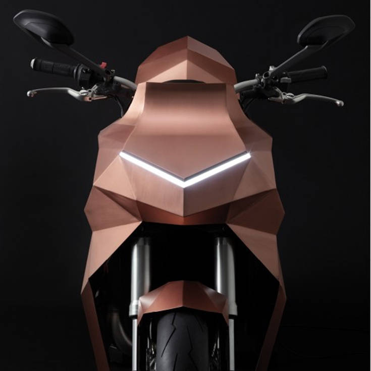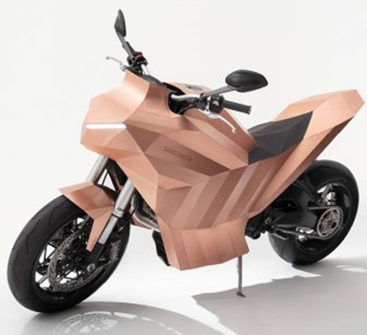 Ως De Castelli Samotracia Copper Motorcycle μάγεψε τον κόσμο του design, καθώς ο Trimarchi εγκατέλειψε τις βασικές αεροδυναμικές γραμμές για να φτιάξει μια κατασκευή που θυμίζει πολύ οριγκάμι. Αιχμηρές πτυχώσεις και διπλώματα δηλαδή που δίνουν στη μηχανή την ψευδαίσθηση της κίνησης ακόμα κι όταν είναι σε στάση.