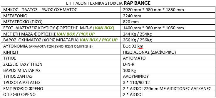 Το RAP BANGE, οδηγείται με άδεια οδήγησης μοτοποδηλάτου και έχει μέγιστη τελική ταχύτητα τα 45km/h.
