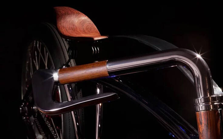Με στιλ που παραπέμπει πρόδηλα στα 30s και τον vintage σχεδιασμό αεροσκαφών και μοτοσικλετών, το ηλεκτρικό θαύμα έχει πλαίσιο από ατσάλι και σέλα σκαλισμένη από ξύλο.