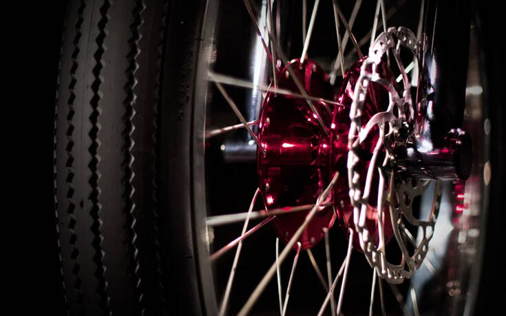 Η κεντρική ξύλινη θήκη φιλοξενεί την μπαταρία, την ίδια ώρα που το μοτέρ των 5.000 watts ασφαλίζει στη θέση του με δερμάτινα λουριά και αγκράφες.