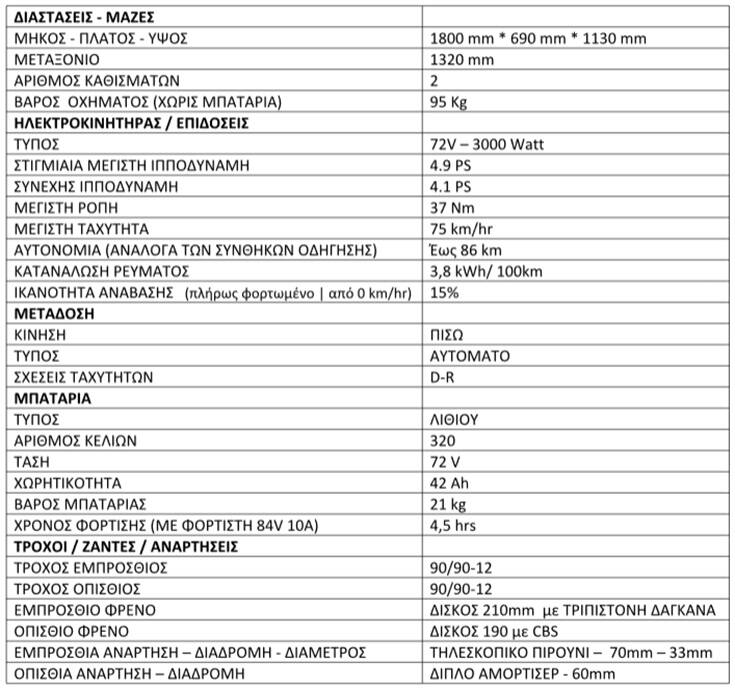 - Η βασική έκδοση διαθέτει μπαταρία λιθίου 72 Volt | 42 Ah