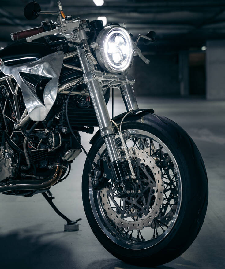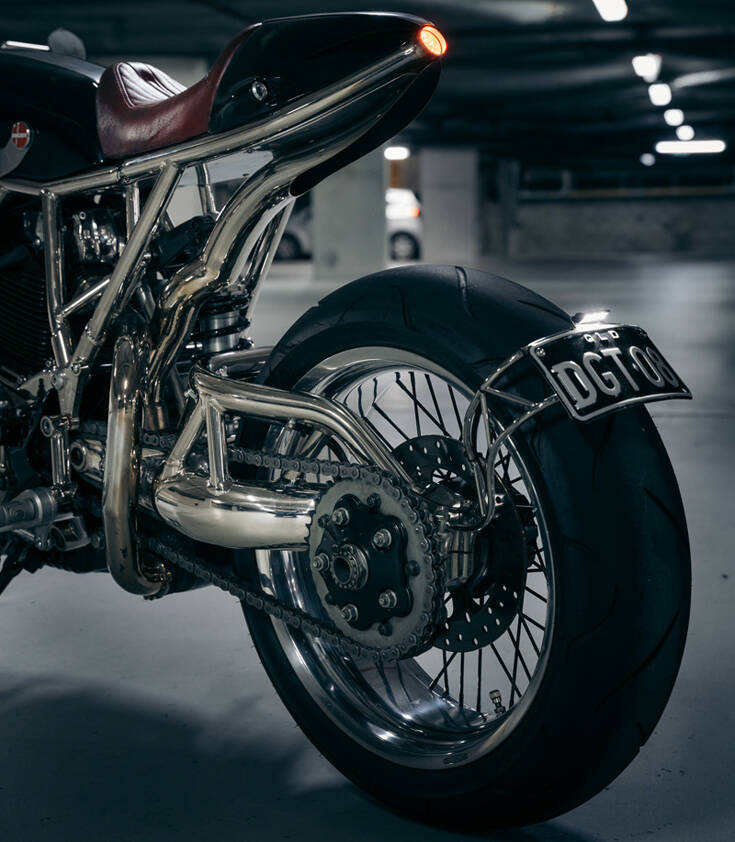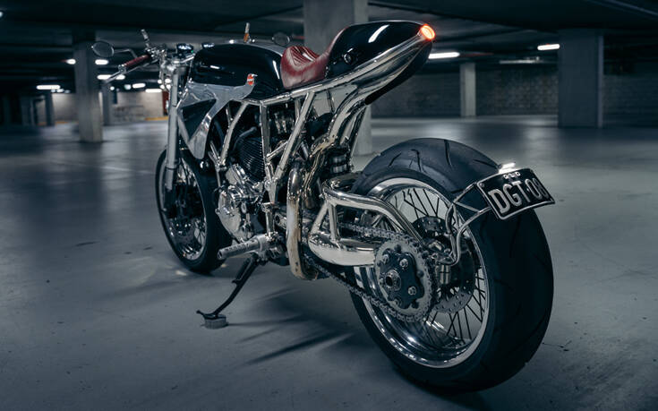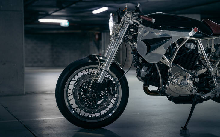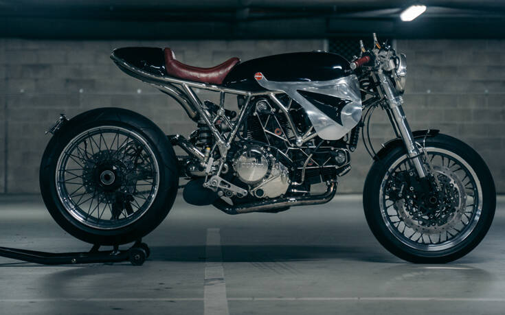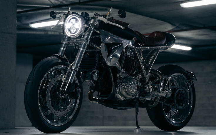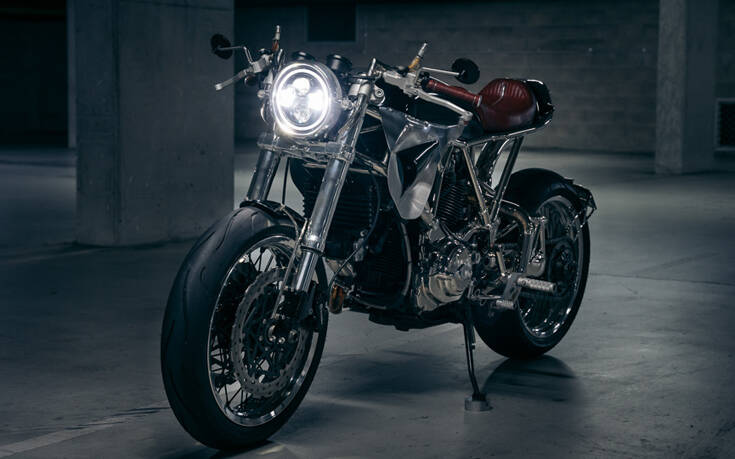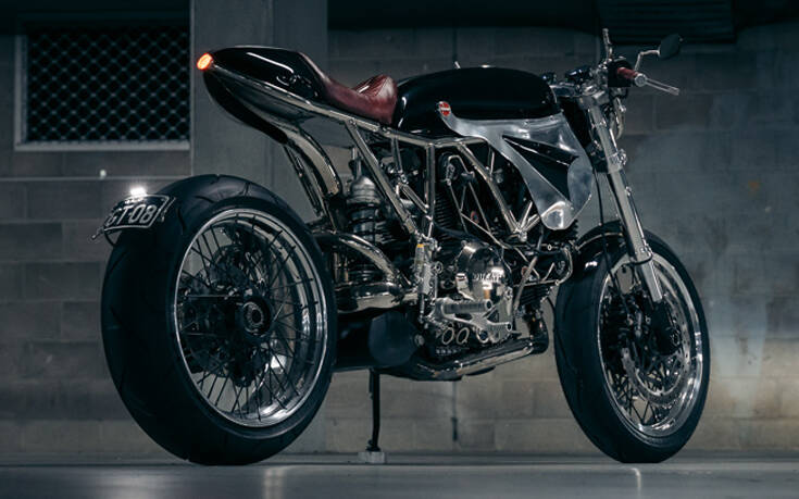 Στην ανακατασκευή χρησιμοποιήθηκαν εξαρτήματα από την Ducati Monster S4R, πριν επινικελωθούν τα πάντα.