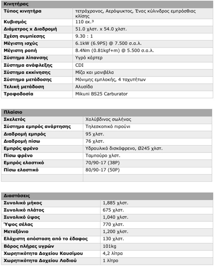 - 4/χρονος, μονοκύλινδρος, αερόψυκτος με 1ΕΕΚ και 2 βαλβίδες