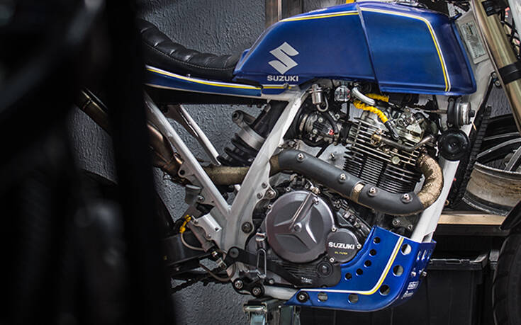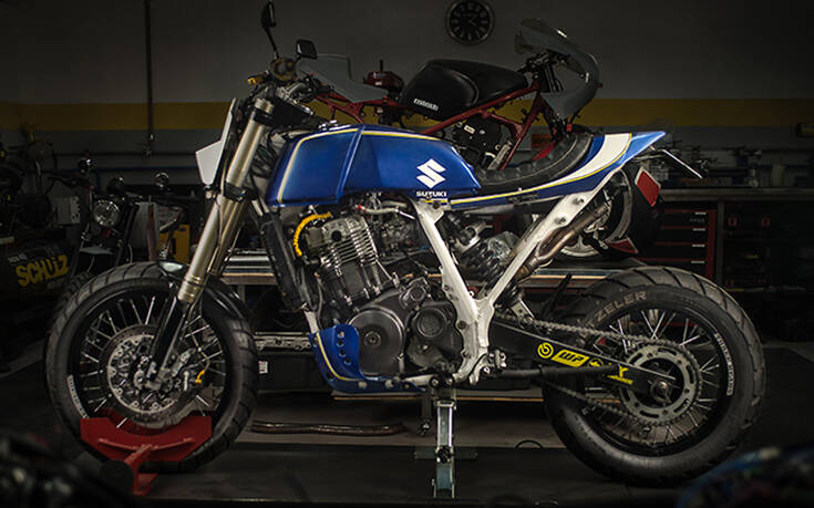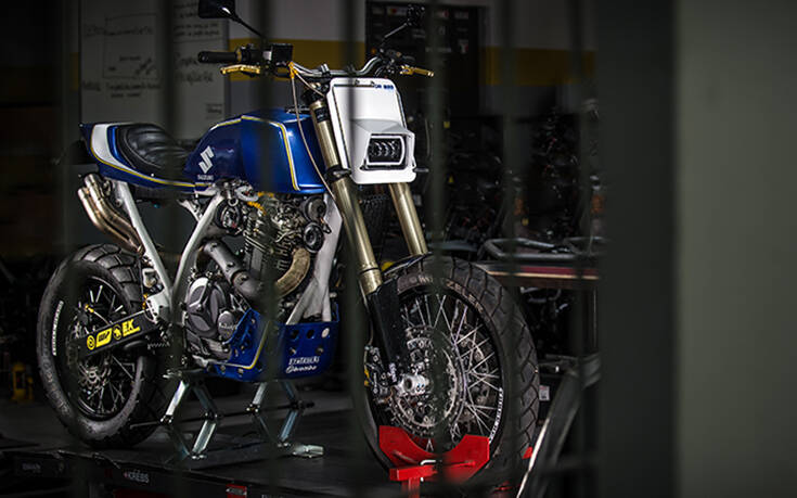 Το σύνολο ολοκληρώθηκε με τροποποιημένο ντεπόζιτο από μια Honda CB400, εξάτμιση από ανοξείδωτο ατσάλι, φρένα Brembo, αναρτήσεις Sachs, LED παντού, ανεστραμμένα πιρούνια και πράγματα που βγήκαν ακόμα και από 3D printer.