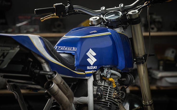 Κι ενώ η Suzuki είχε υποσχεθεί κάποια στιγμή να αναβιώσει το «μεγάλο DR», ο Renato Frateschi της βραζιλιάνικης Frateschi Garage αποφάσισε να μην περιμένει τους Ιάπωνες, φτιάχνοντας τη δική του εκδοχή για ένα σύγχρονο DR800 με εξόφθαλμη street-tracker έμφαση.