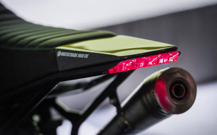 Η δουλειά της έδωσε στη Multistrada μια φουτουριστική νότα, κάνοντας τη αυτό που μάλλον ήταν πάντα: ένα δυνατό και ασυμβίβαστο supermoto.