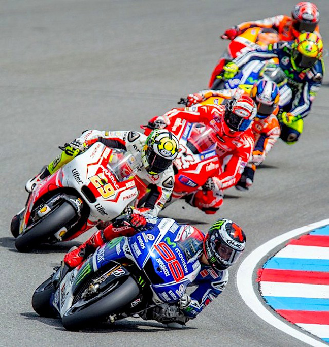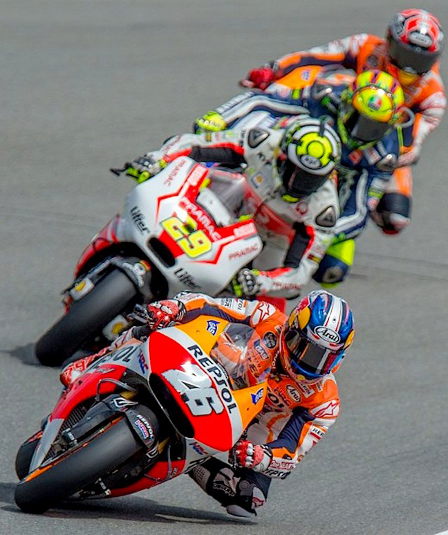 Στην Κ3 πέρασε, στην Κ5 ο Lorenzo αποπειράθηκε να απαντήσει, αλλά δεν τα κατάφερε. Από κει και πέρα δεν ξαναπείλησε και ο Dani άρχισε να απομακρύνεται. Σύντομα είχε φύγει μισό δευτερόλεπτο μπροστά. Ο Marquez στο μεταξύ αγκομαχούσε να κρατήσει πίσω τον αγριεμένο γερόλυκο Rossi.